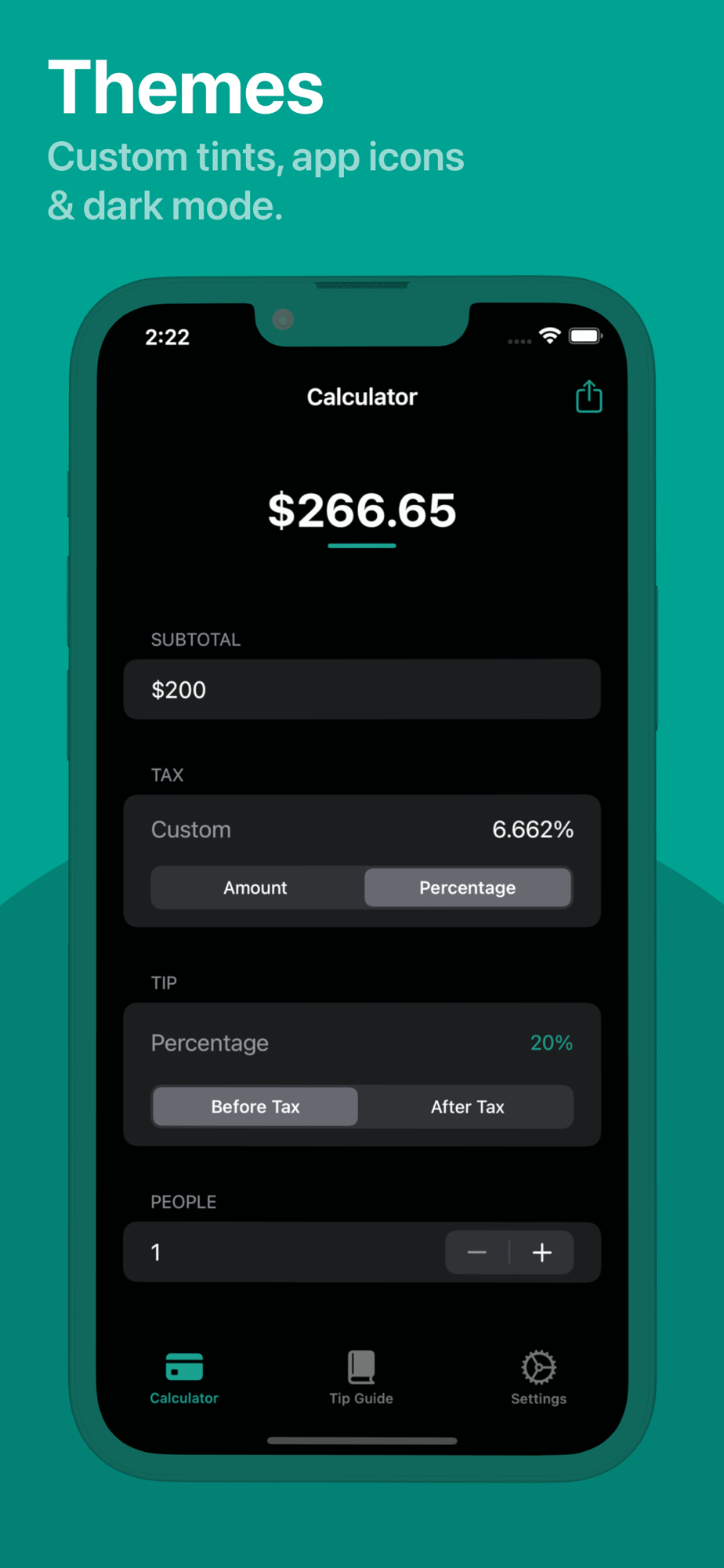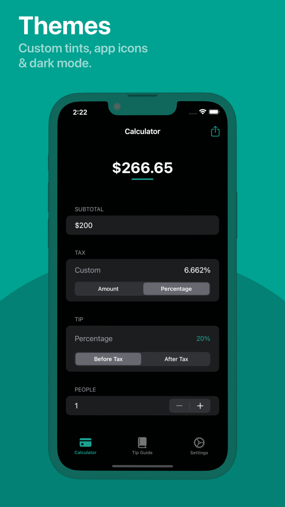 · Apple Watch app· Mac app for Apple M1 Macs · Added automatic tax calculation feature· Changed the custom tax to be input via a text field · Improved calculator & tip guide · Improved sharing receipt UI· Added a more prominent share receipt button· Navigation updates· Improved split-screen support · Improved settings screen UI· App tint changing fixes · Fixed buttons not working sometimes