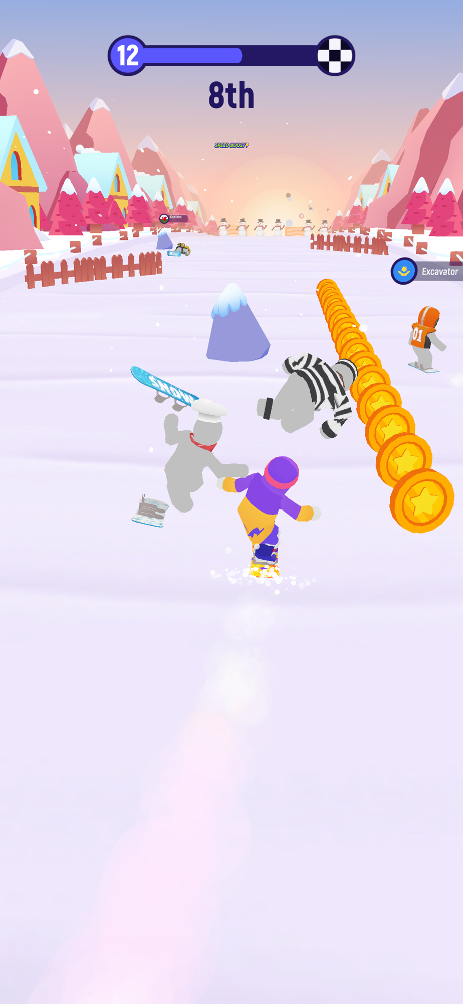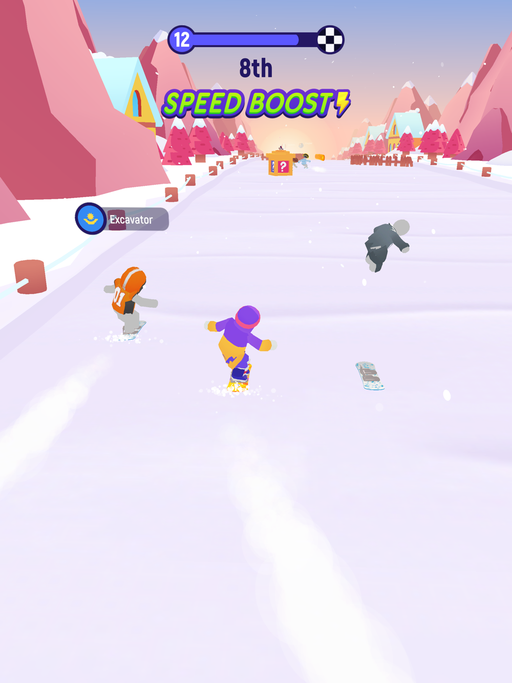 *Choose your favourite character, board and get ready for a exciting ride on the snow track with other opponents!