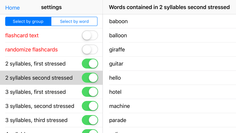 This application is a great clinical tool for a speech therapist, but it is also used by parents to help children practice producing 2, 3 and 4 syllable words. For children who use the phonological process of weak syllable deletion, this app is especially helpful. For English Language Learners, this app can be used to practice syllable stress. A fun and visually appealing matching game keeps users motivated to practice while they play.