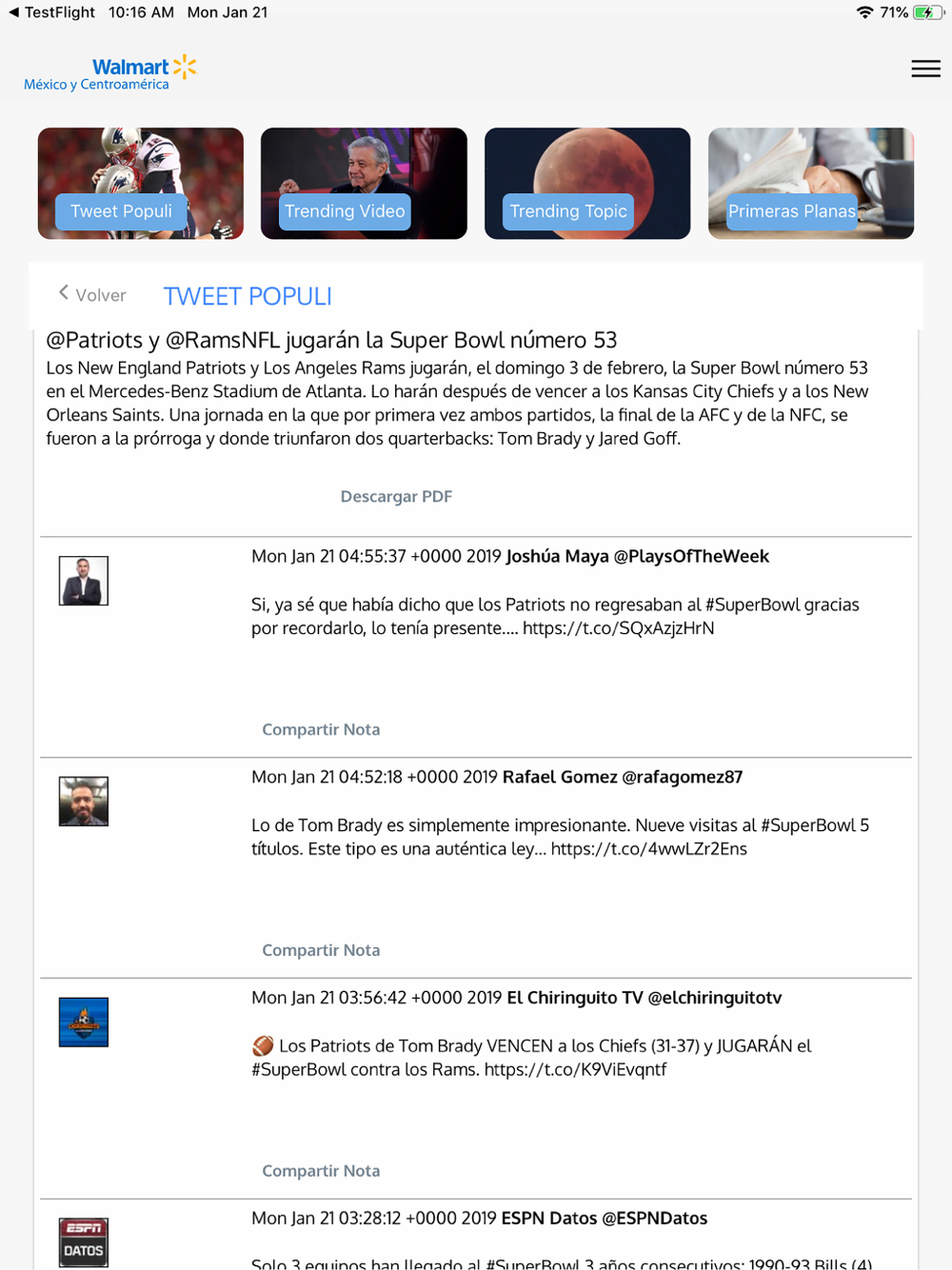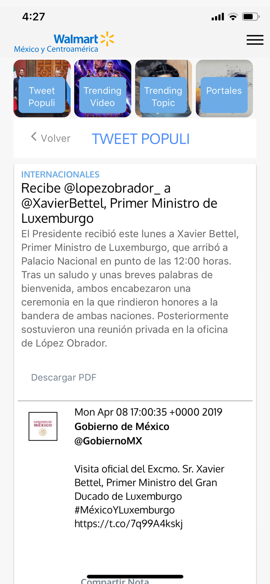 Desarrollamos esta aplicación para recopilar toda la información relacionada a Walmart de México y Centroamérica.