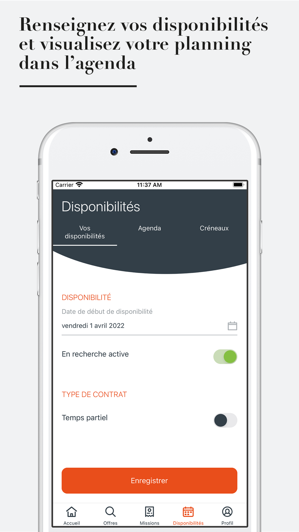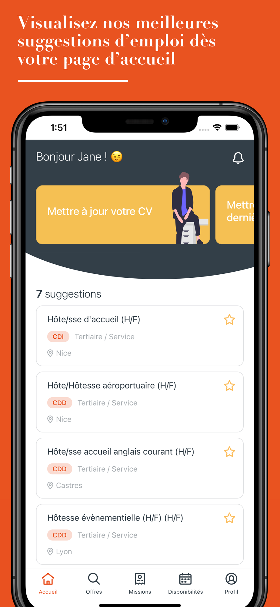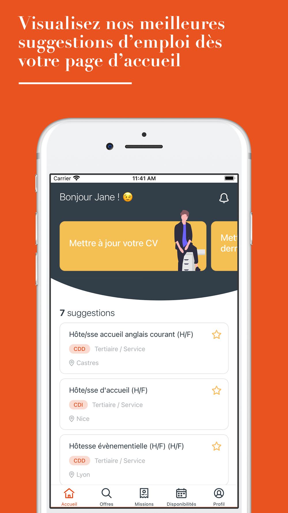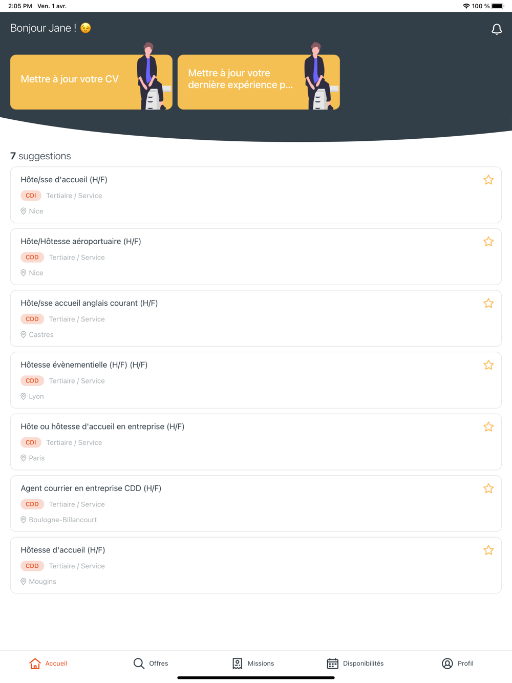 ● Importez votre CV, complétez votre profil dans votre espace candidat et indiquez vos disponibilités