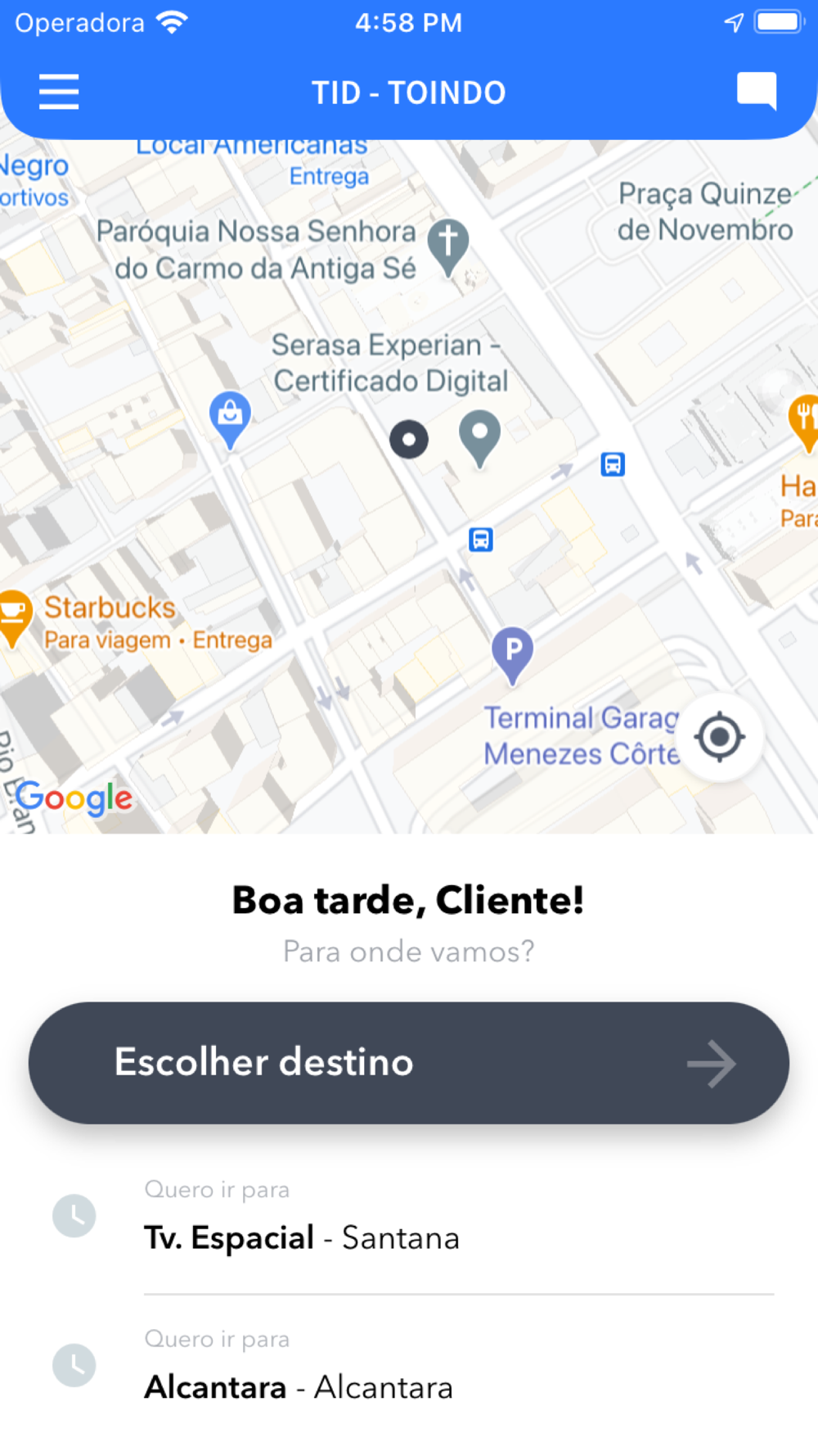 Nosso aplicativo permite que você chame um de nossos veículos e acompanhe o deslocamento do carro no mapa, sendo avisado quando ele estiver na sua porta.