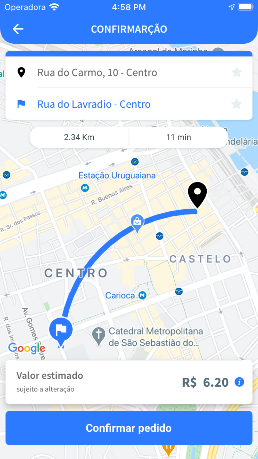 A cobrança funciona como a chamada de um táxi normal, ou seja, só inicia a contagem quando você entra no carro.
