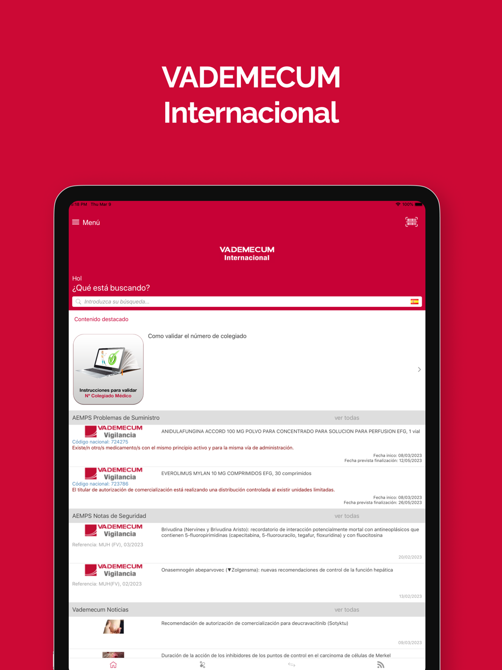 Vademecum Internacional es una completa aplicación de pago donde encontrará la Guía Farmacológica en español más consultada en el mundo, actualizada semanalmente durante todo el periodo de suscripción.