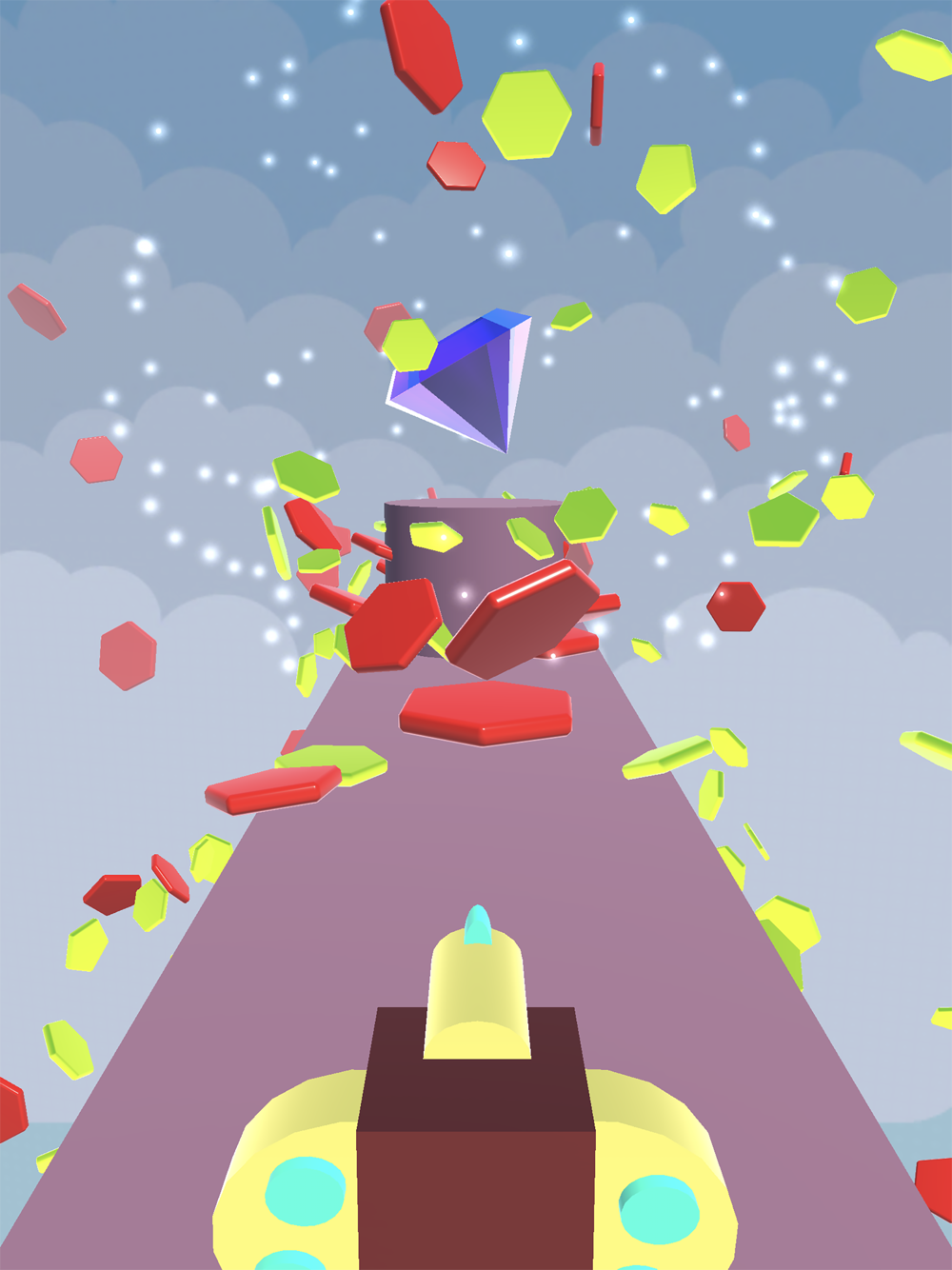 Avoid shooting into the red rotating blocks, if you get into it you lose!