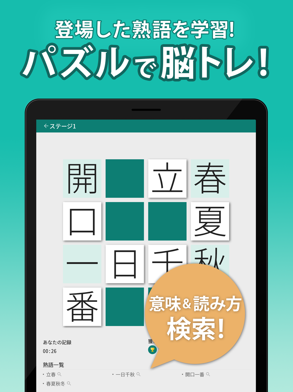 漢字や熟語、クロスワードや漢クロ・漢字ナンクロが好きな方にオススメのアプリです!