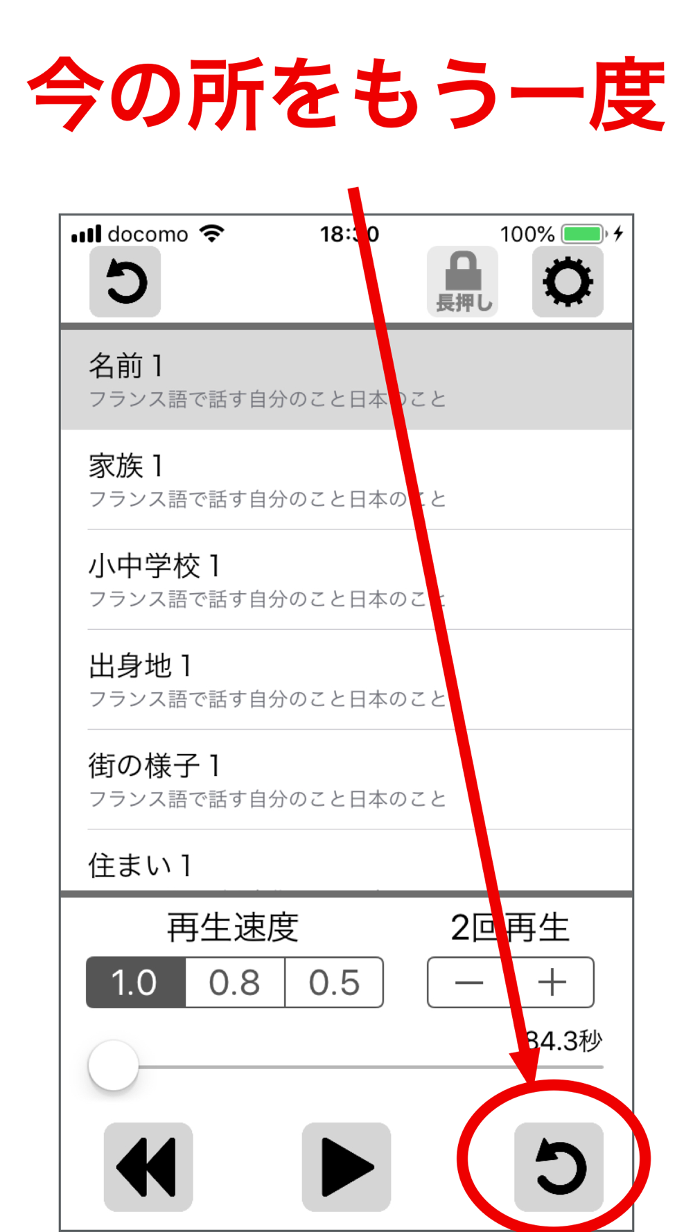 また、デジタルプレイヤーの特徴を生かして、音声の出始めを記憶しておき、ボタン一つでそこに戻って再生します。