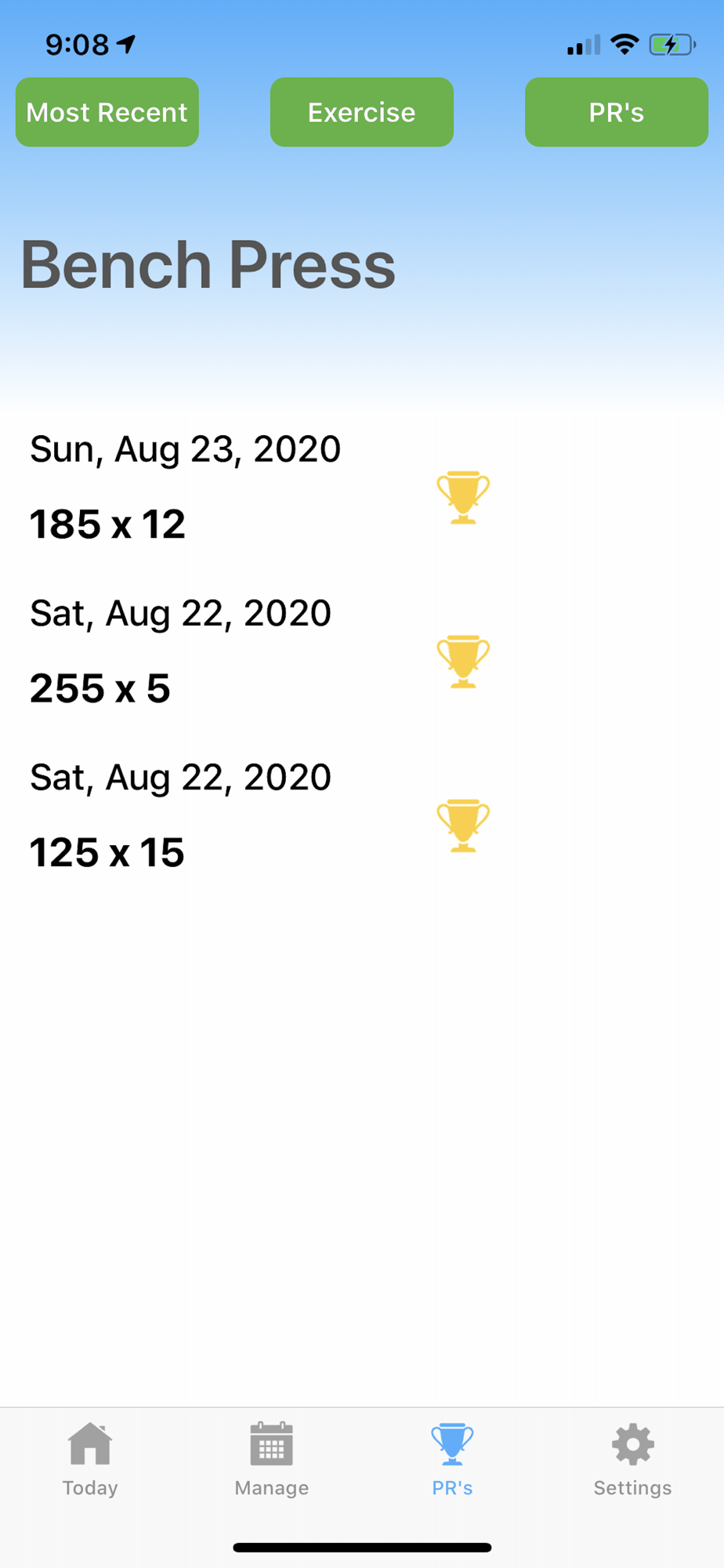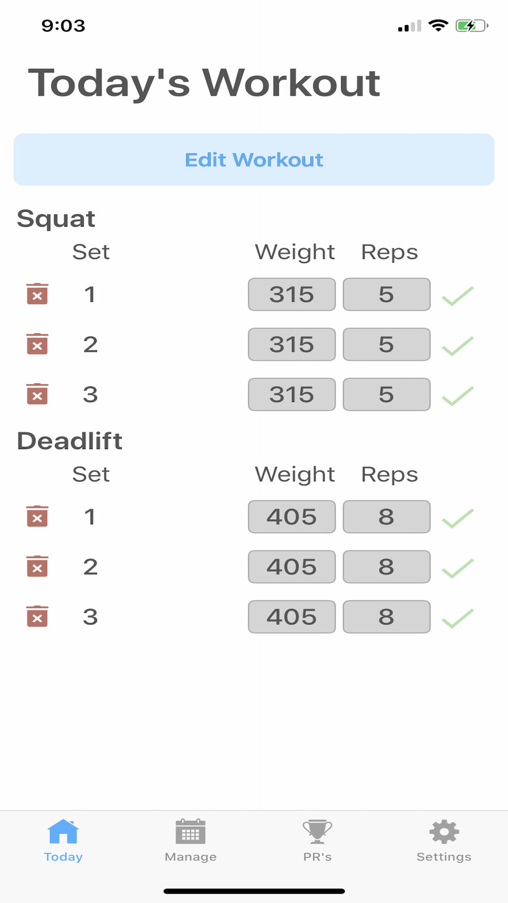 Track and manage all your Workouts and Personal Records in the gym. Make sure you're getting stronger by hitting new Personal Records doing more Sets, Reps, or Weight.