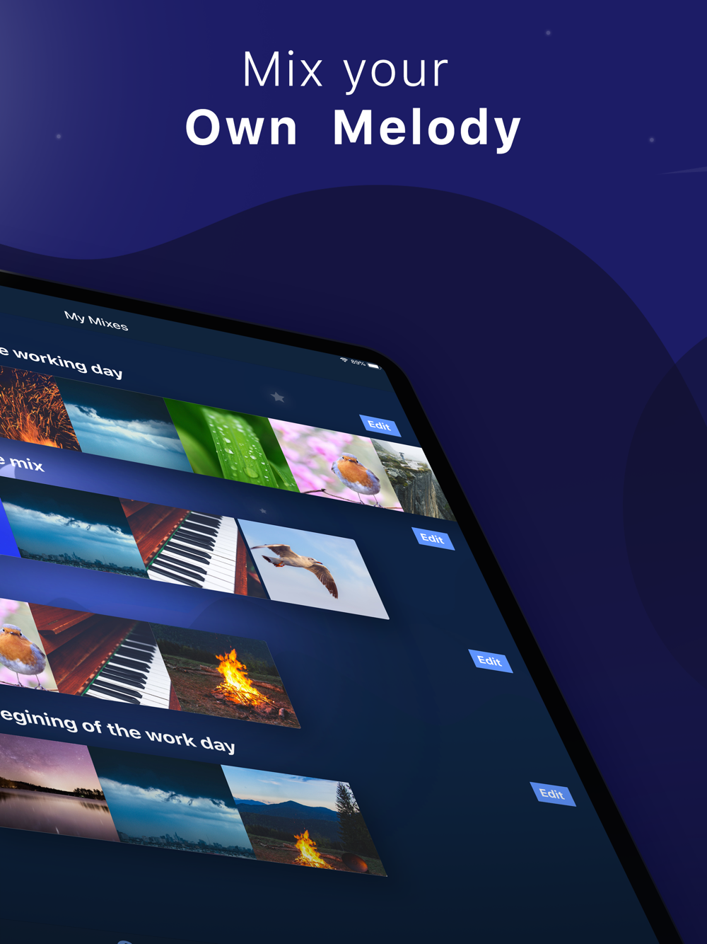 Make your personalised mix, set the timer, close your eyes and relax.