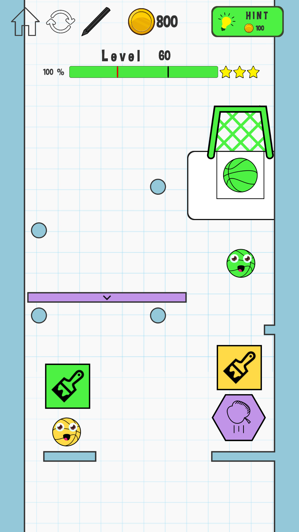 Do you want be a basketball champion? Your job is to draw a line to put each ball in the same color's basket!