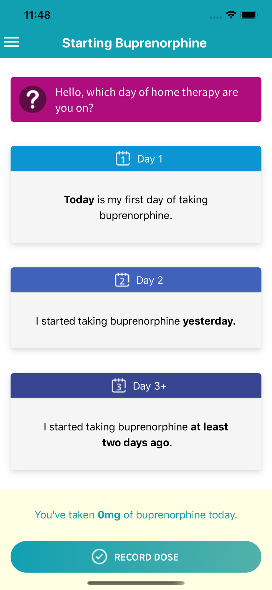 Buprenorphine Home Induction Tool (BUP) is an informative mobile application that guides patients on how to conduct Buprenorphine induction using a series of questions that the patient is asked in the mobile application.