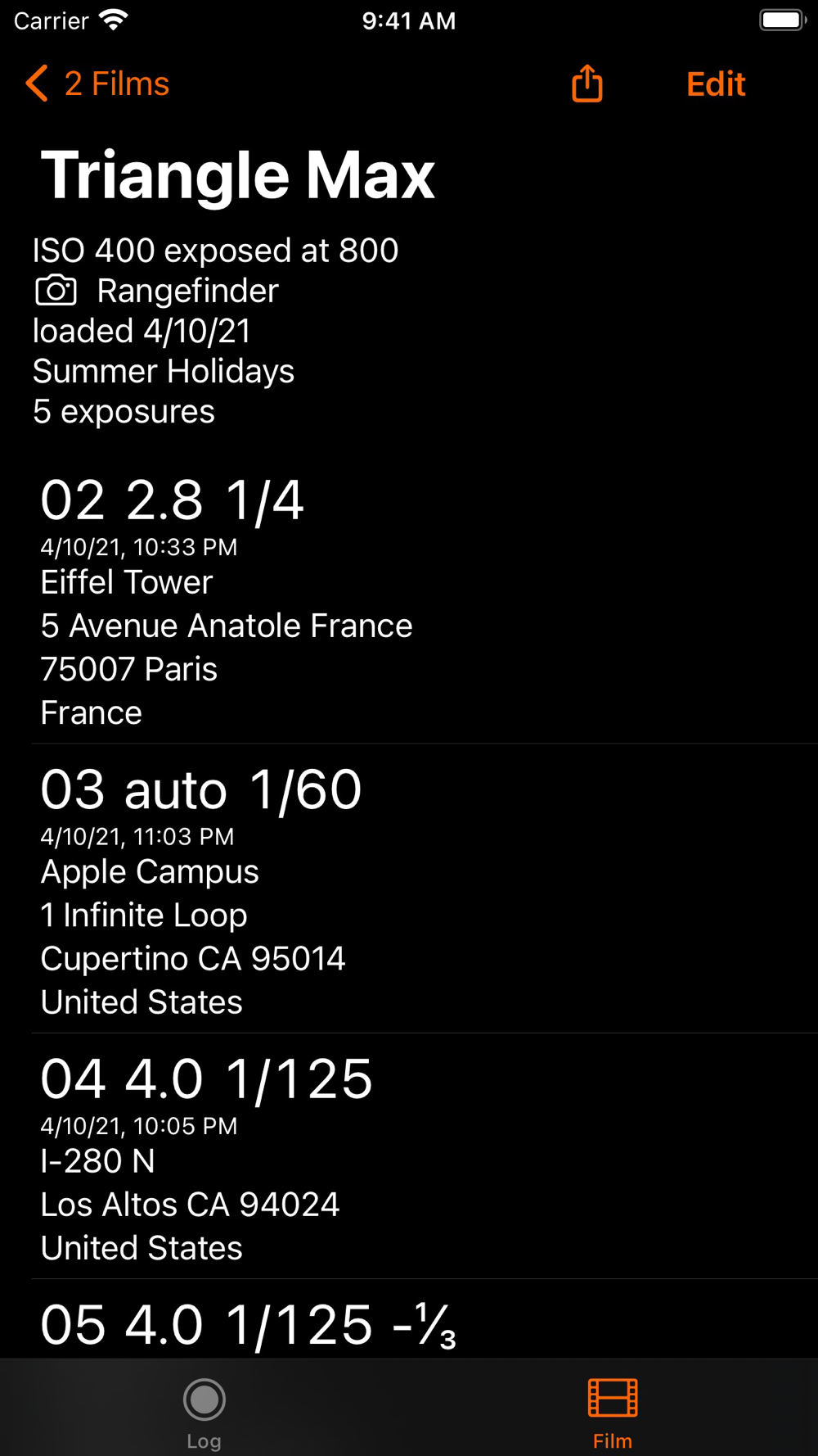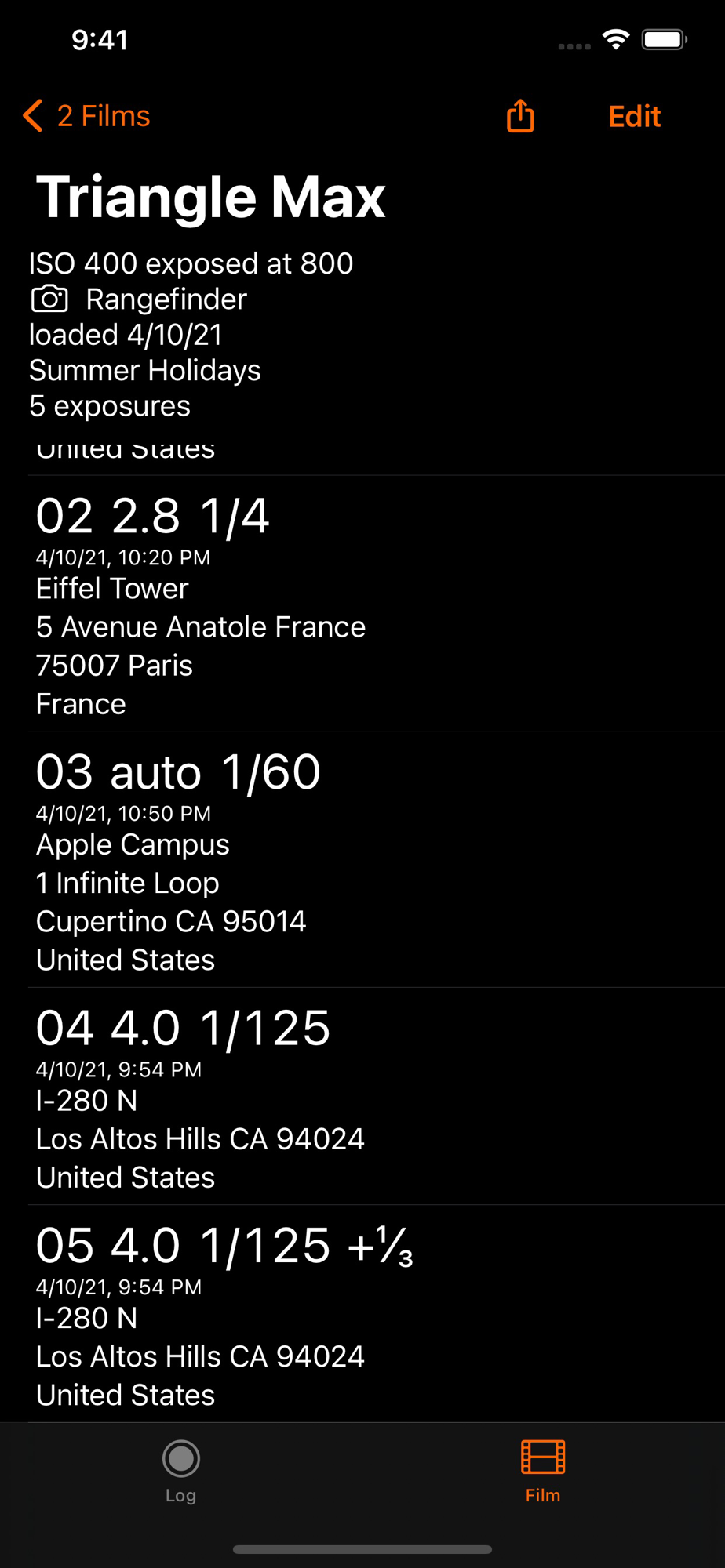 Quickly capture exposure settings and location for every photo and every roll of film.