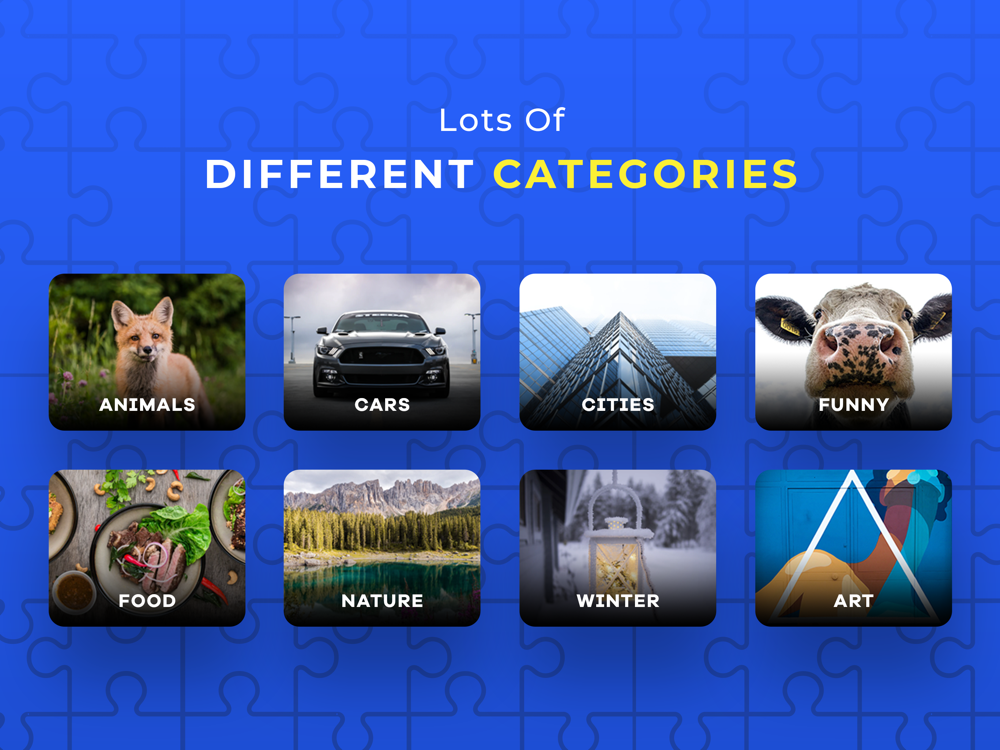 Enjoy different categories with animal puzzles, nature puzzles, sci-fi puzzles, and more