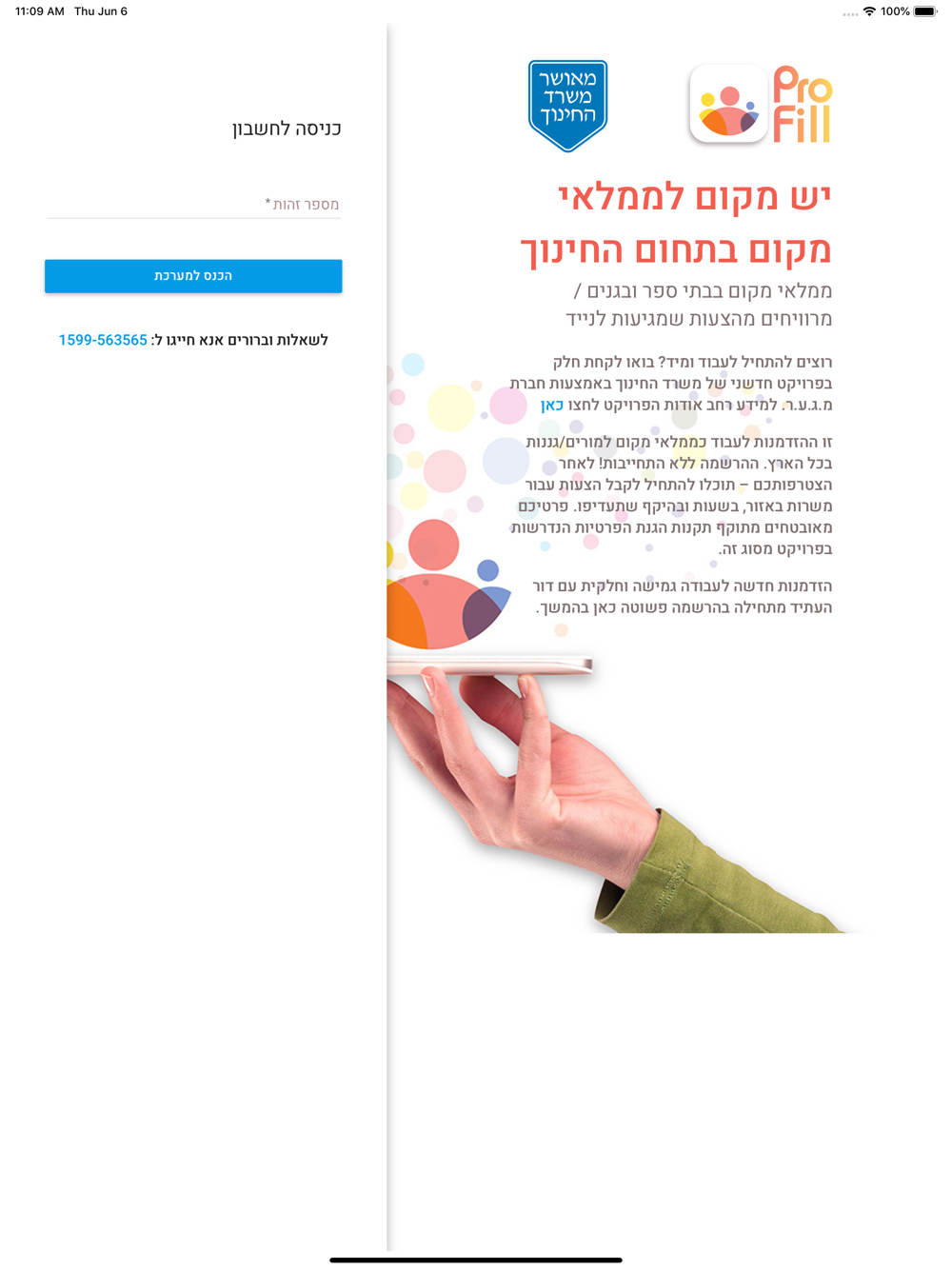 זו ההזדמנות לעבוד כממלאי מקום למורים/גננות בכל הארץ. ההרשמה ללא התחייבות! לאחר הצטרפותכם – תוכלו להתחיל לקבל הצעות עבור משרות באזור, בשעות ובהיקף שתעדיפו. פרטיכם מאובטחים מתוקף תקנות הגנת הפרטיות הנדרשות בפרויקט מסוג זה.