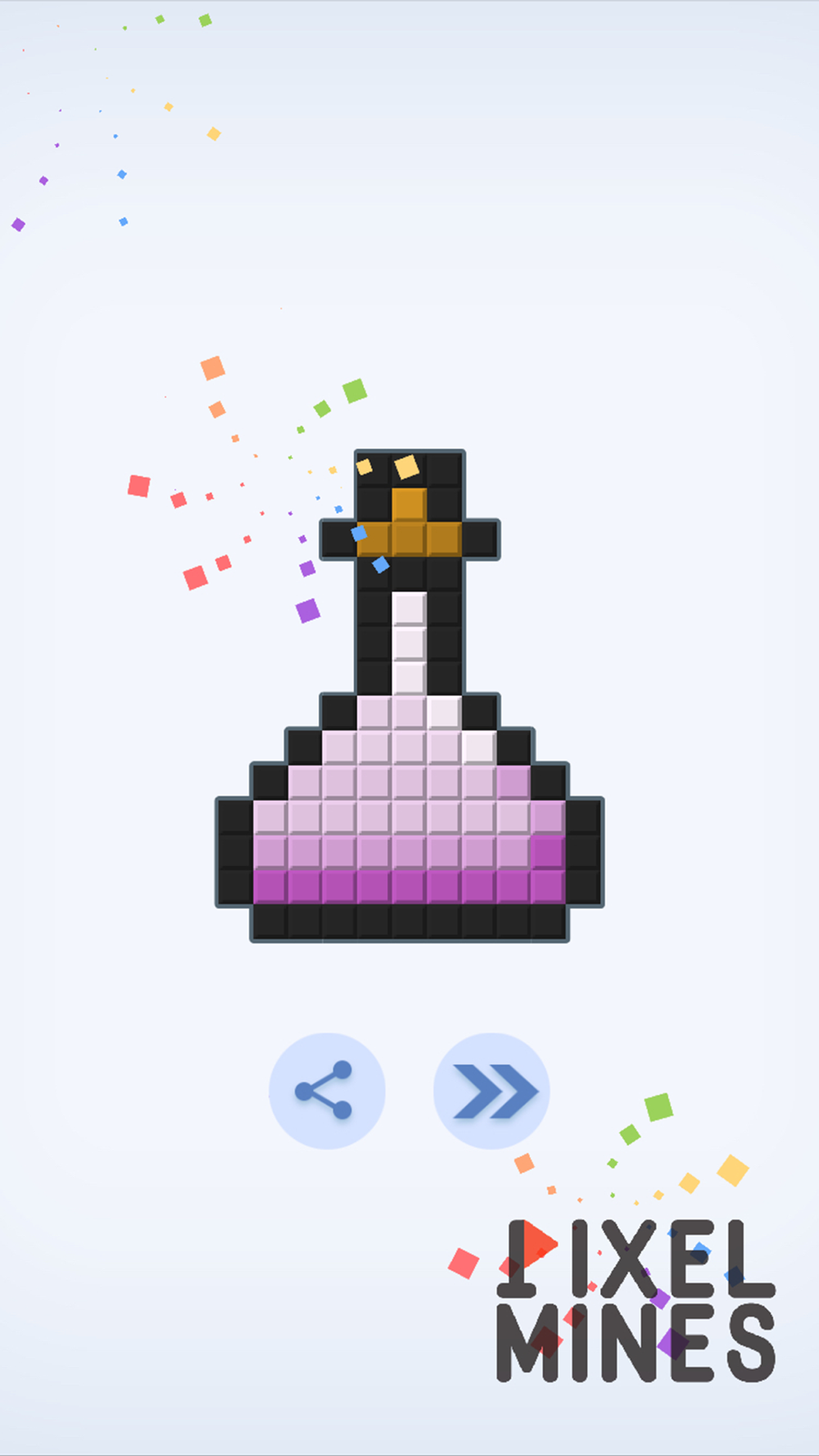 The objective of the game is to clear a map containing hidden “mines” or bombs without detonating any of them, with help from clues about the number or neighboring mines in each field. The game is played by revealing squares of the grid by touching each square. If a square containing a mine is revealed, the player loses the game. If no mine is revealed, a digit is instead displayed in the square, indicating how many adjacent squares contains mines. If no mines are adjacent, the square becomes blank, and all adjacent squares will be recursively revealed. The player uses this information to deduce the contents of other squares, and may either safely reveal each square or mark the square as containing a mine. After clearing all the mines, colored pixel images would be revealed. Play simple mine game and collect pixel images. You would love it!