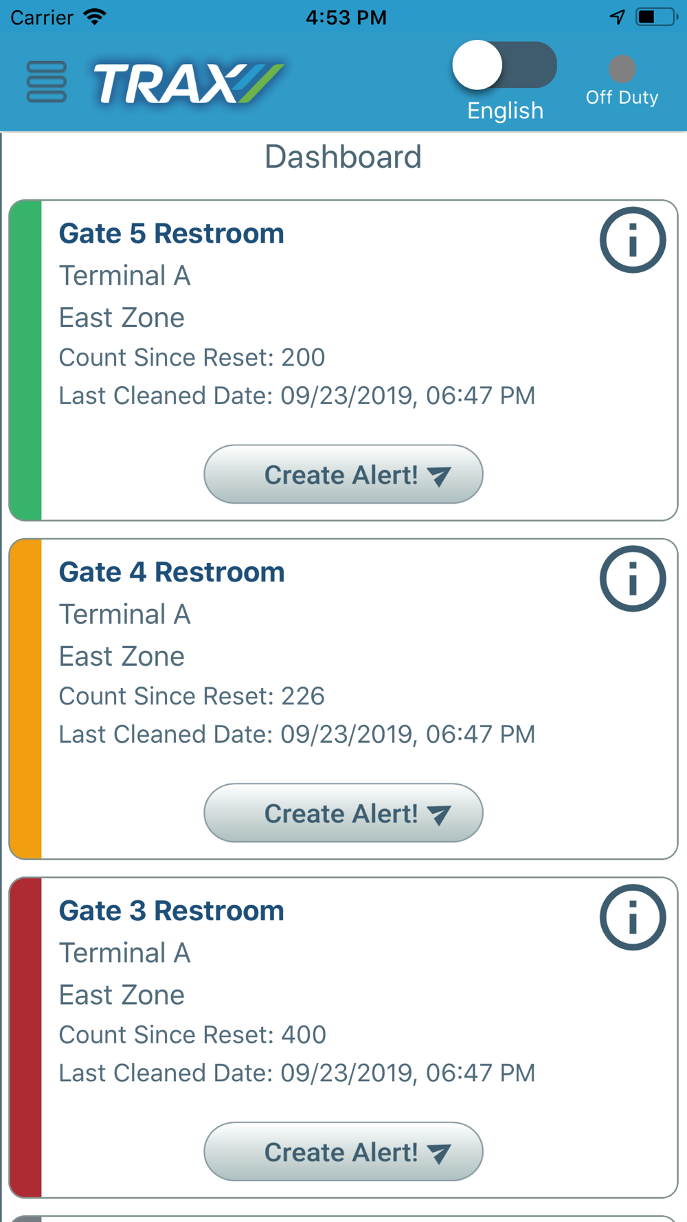 The purpose of this app is to notify Custodial Worker of the Cleaning Alert and allow them to manage task which has performed and inventory used during the cleaning of the restroom.