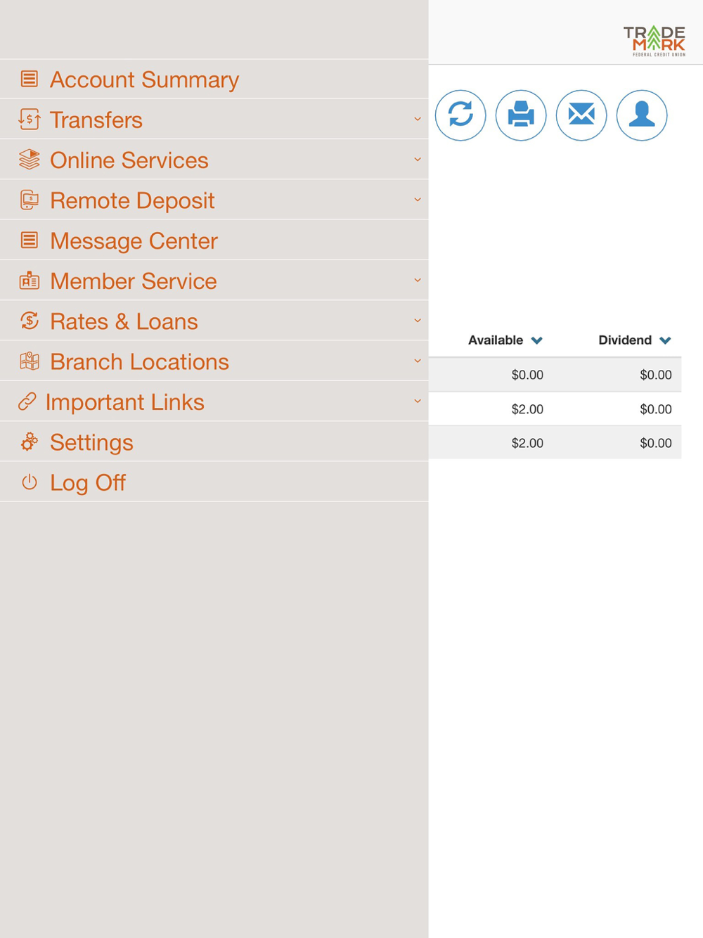 With the Trademark Mobile Banking app you can access your accounts anytime, anywhere from your phone or iPad. This application was designed with you in mind to bring all of our online features anywhere you go. Check your balances, review your history, transfer funds, pay your loans, send cash, apply for a loan and find the nearest branch, ATM or Shared Branching location.