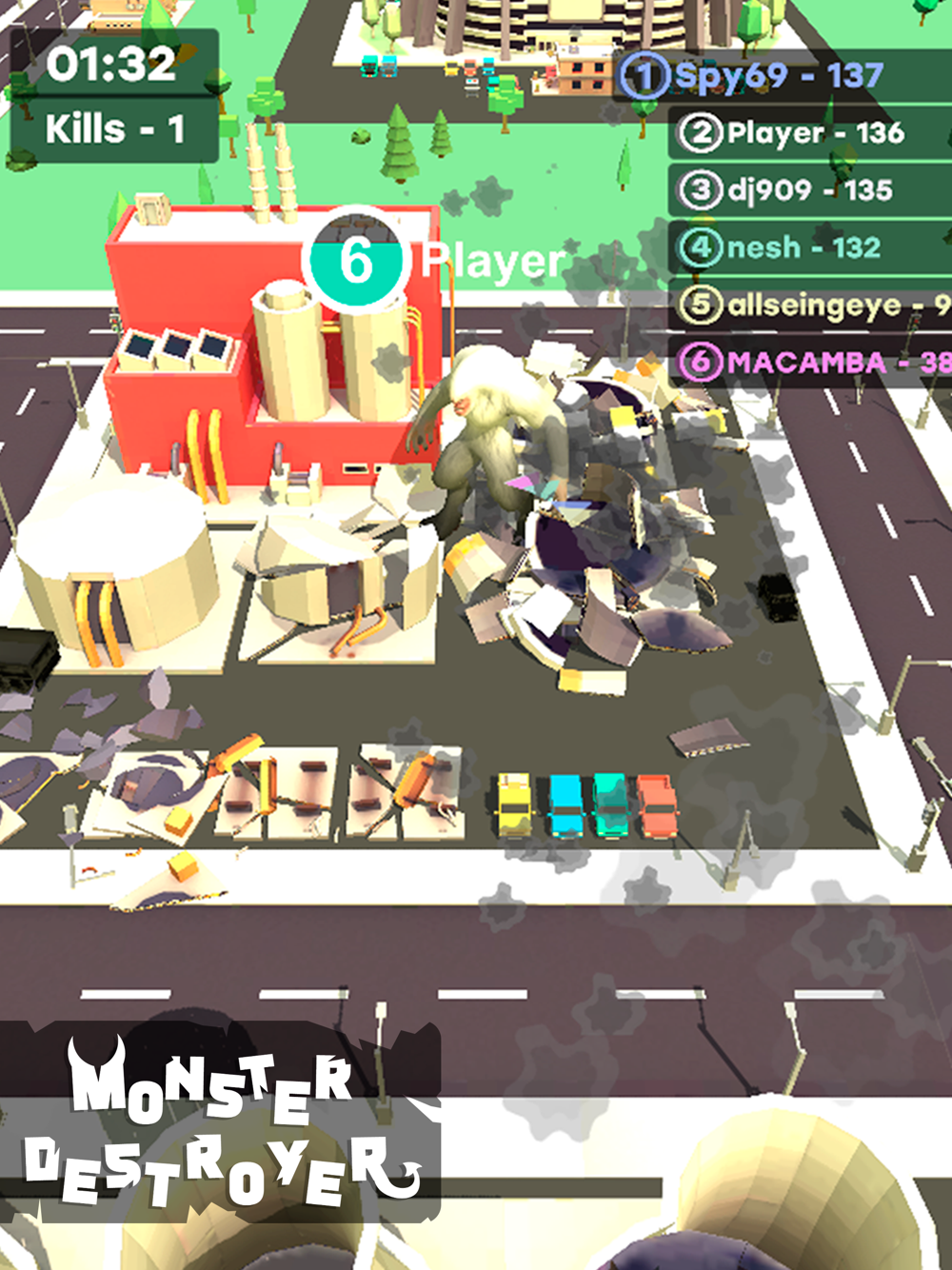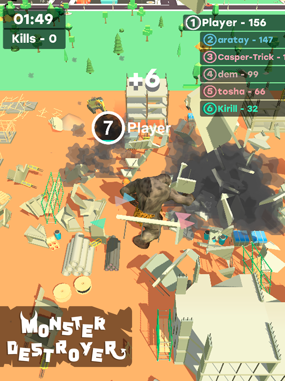 Like to destroy buildings? Crush the city, buildings and everything that you meet on your way. Become the biggest monster and defeat your rivals.