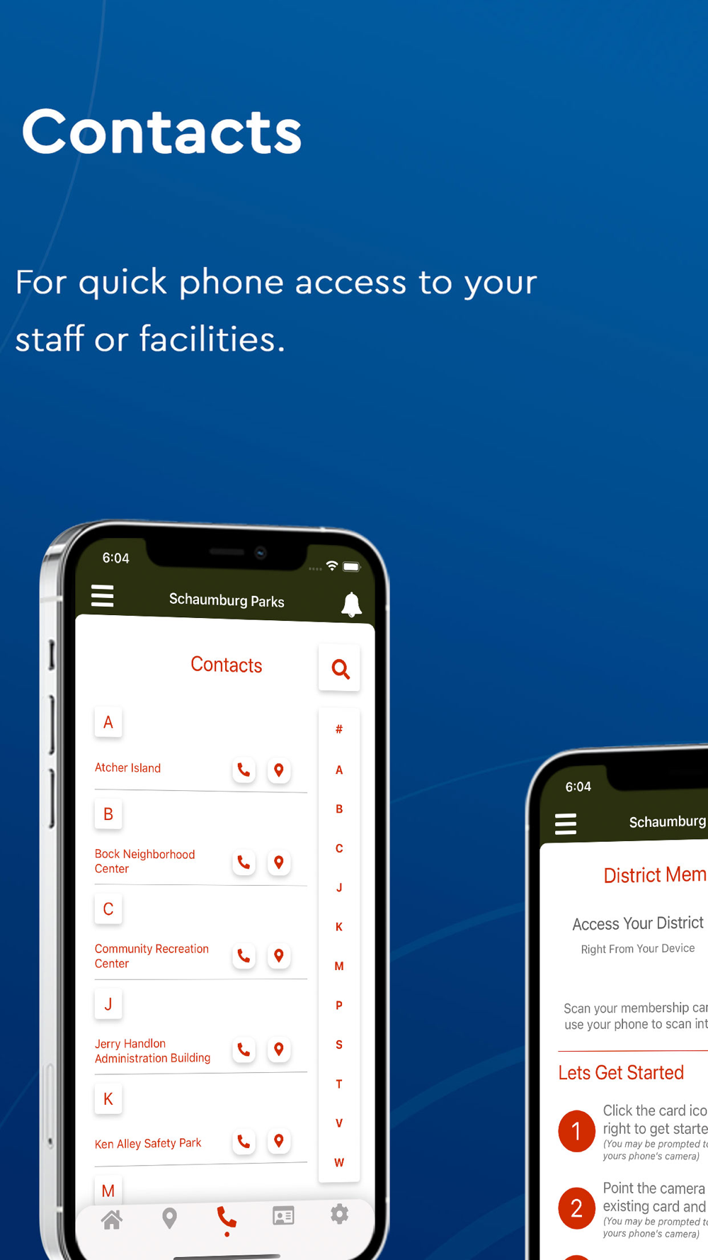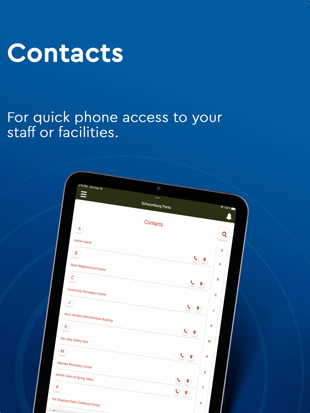 - Contact Schaumburg Park District facilities by phone or email with the tap of a finger.