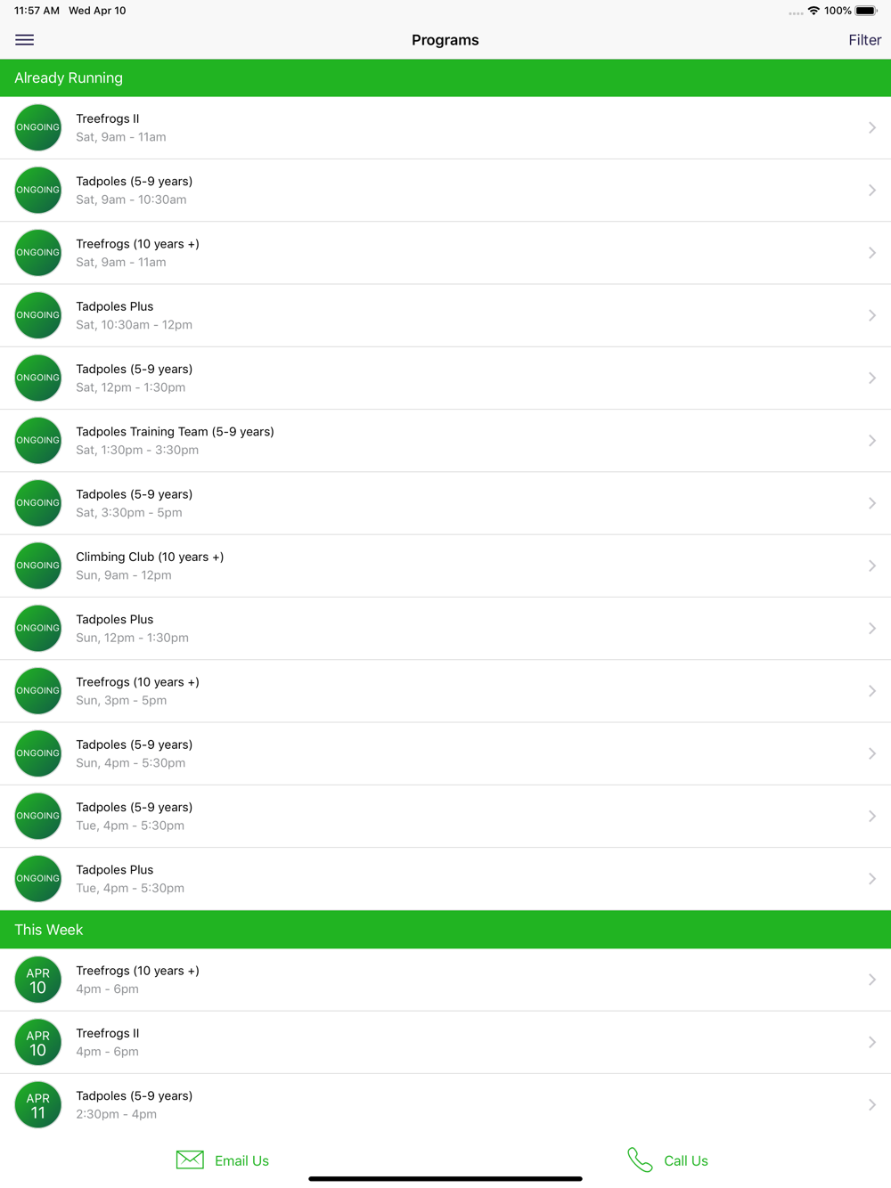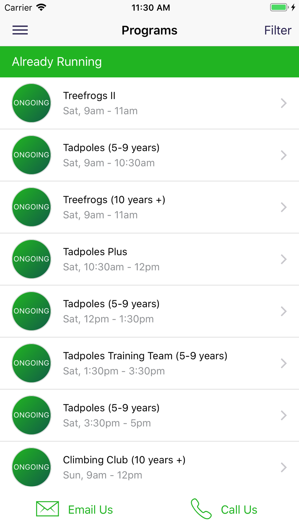 - Have a class in mind? Browse by program, age, day and time. You can register or even email to ask questions.
