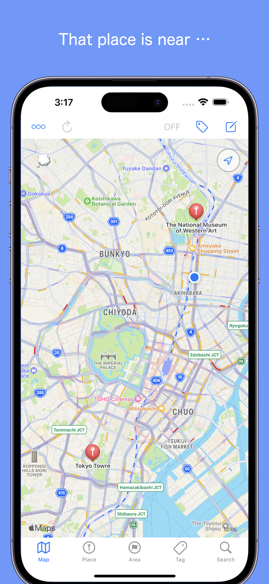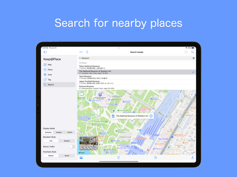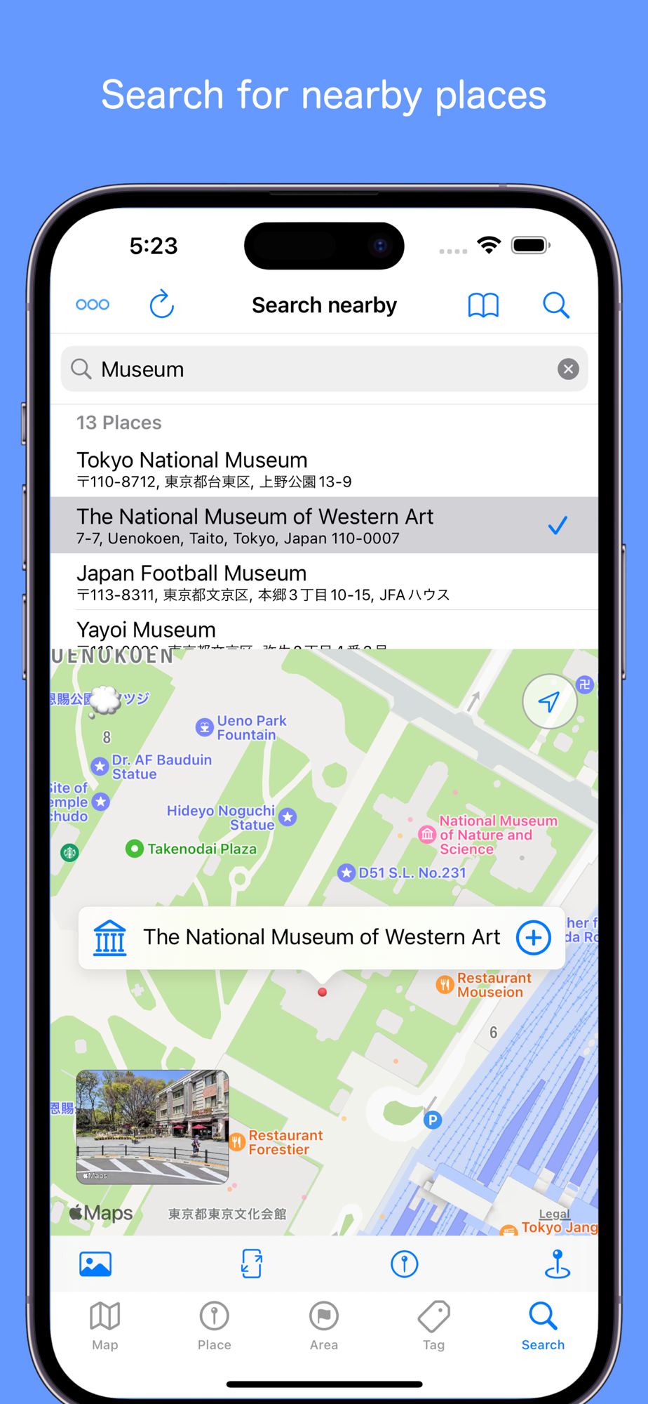 - Information such as tags, notes, and URLs can be registered in places
