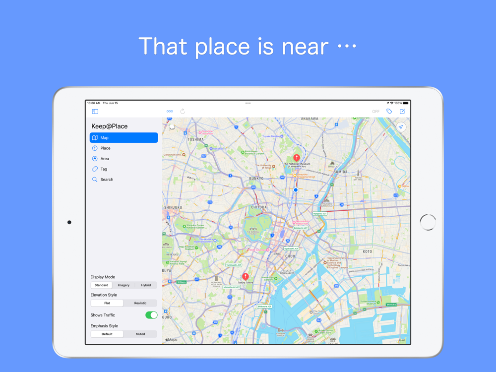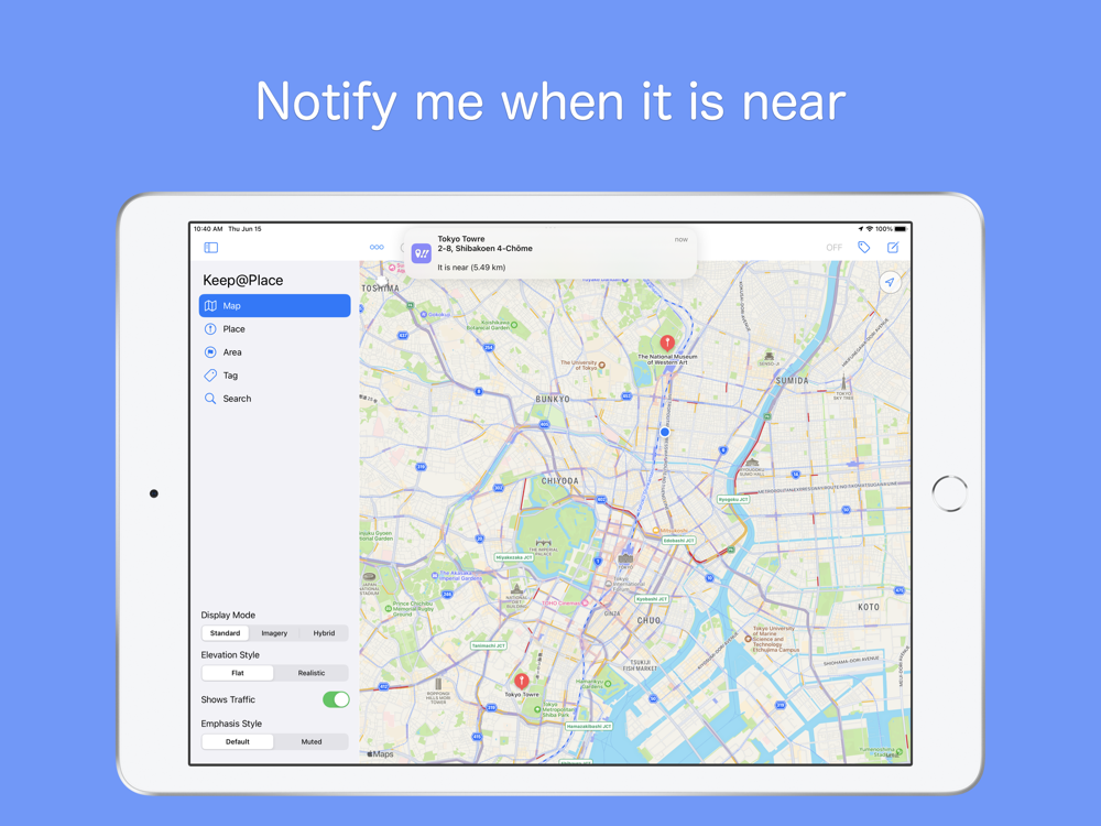 If you went unknown place, app will notify nearby keeping place.