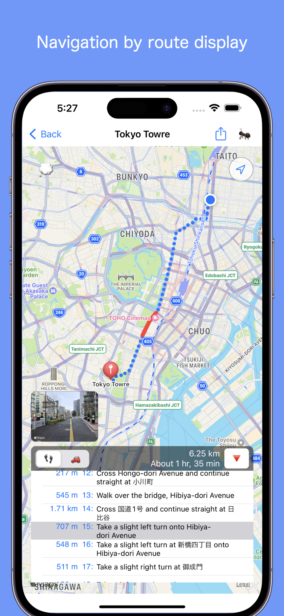 - Show route from current position