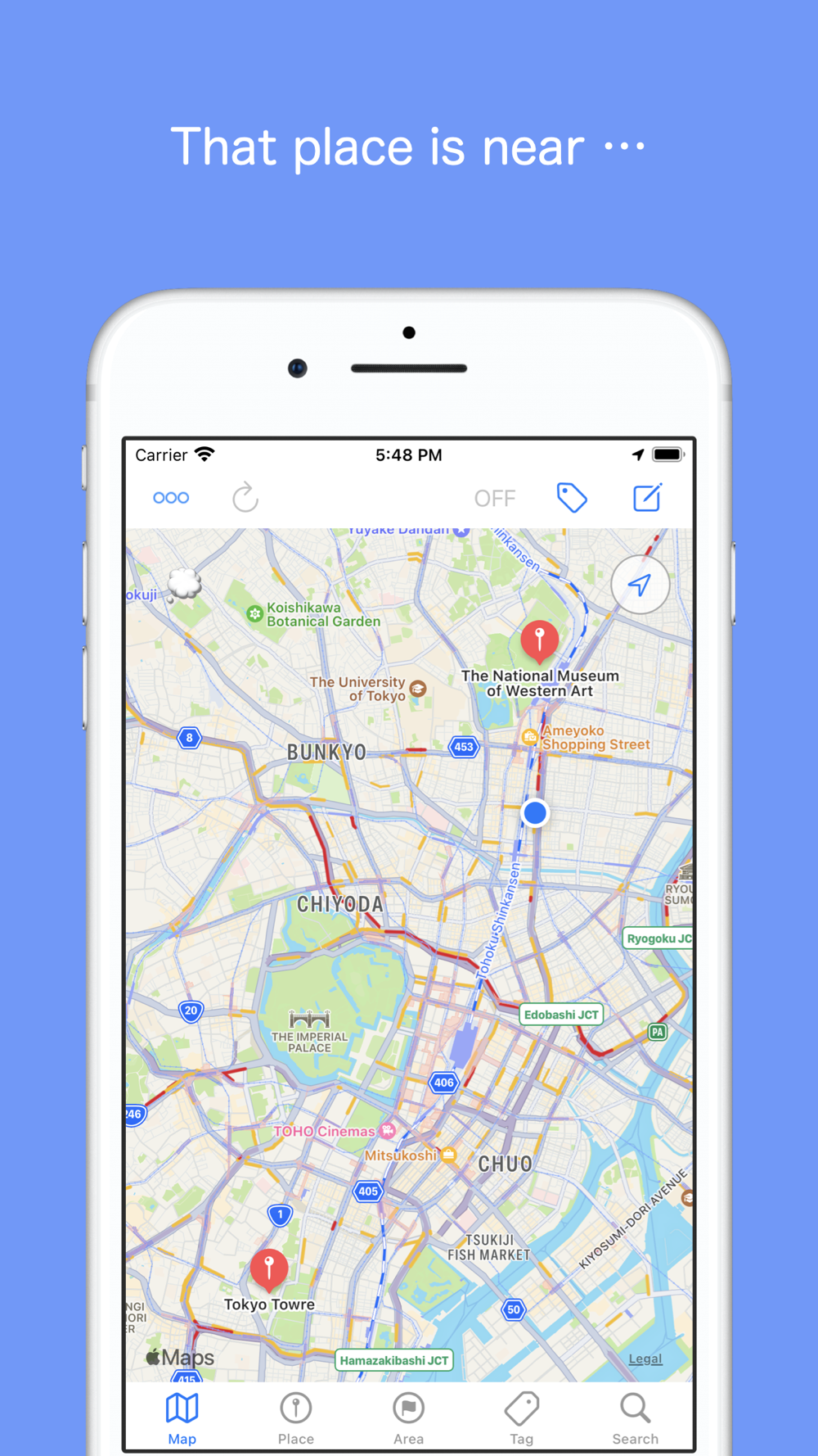 If you keeping a place or store you checked with a TV or magazine, This app is that will notify you when you went nearby.
