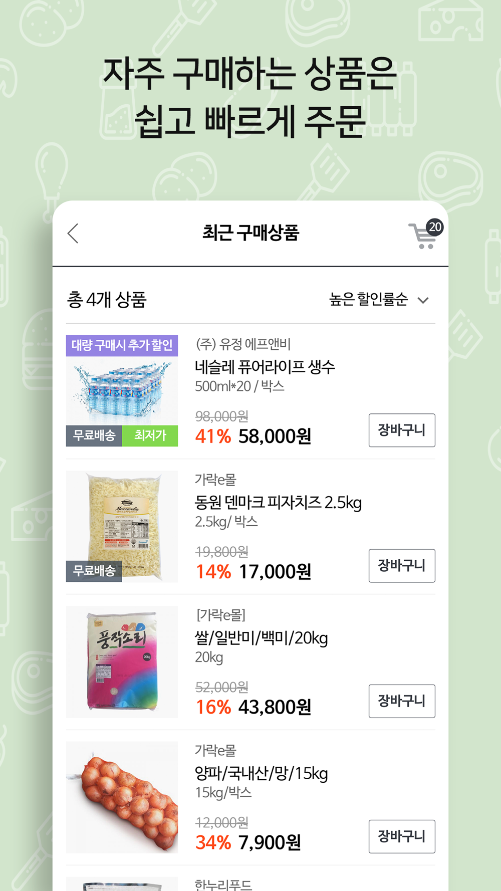 20,000여 개에 달하는 식당 전용 상품을 한 곳에서 저렴하게 구매 가능합니다.