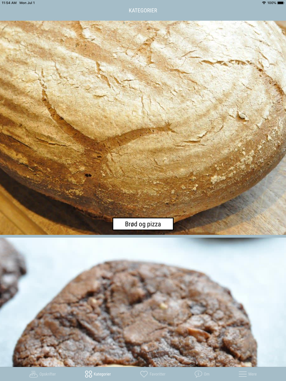 I app'en finder du opskrifter på mad til de travle, Römertopf-retter, salater, desserter, suppe, brød og boller.