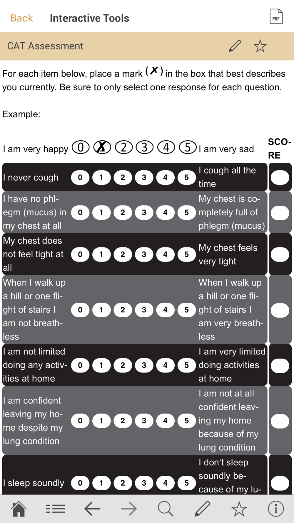 Access the Global Initiative for Chronic Obstructive Lung Disease (GOLD) 2019 Report at the point of care and use interactive tools such as the Refined ABCD Assessment tool, the mMRC Dyspnea Scale, the CAT Assessment, the COPD treatment algorithm and many more tools. The app allows users to bookmark important pages and add notes.