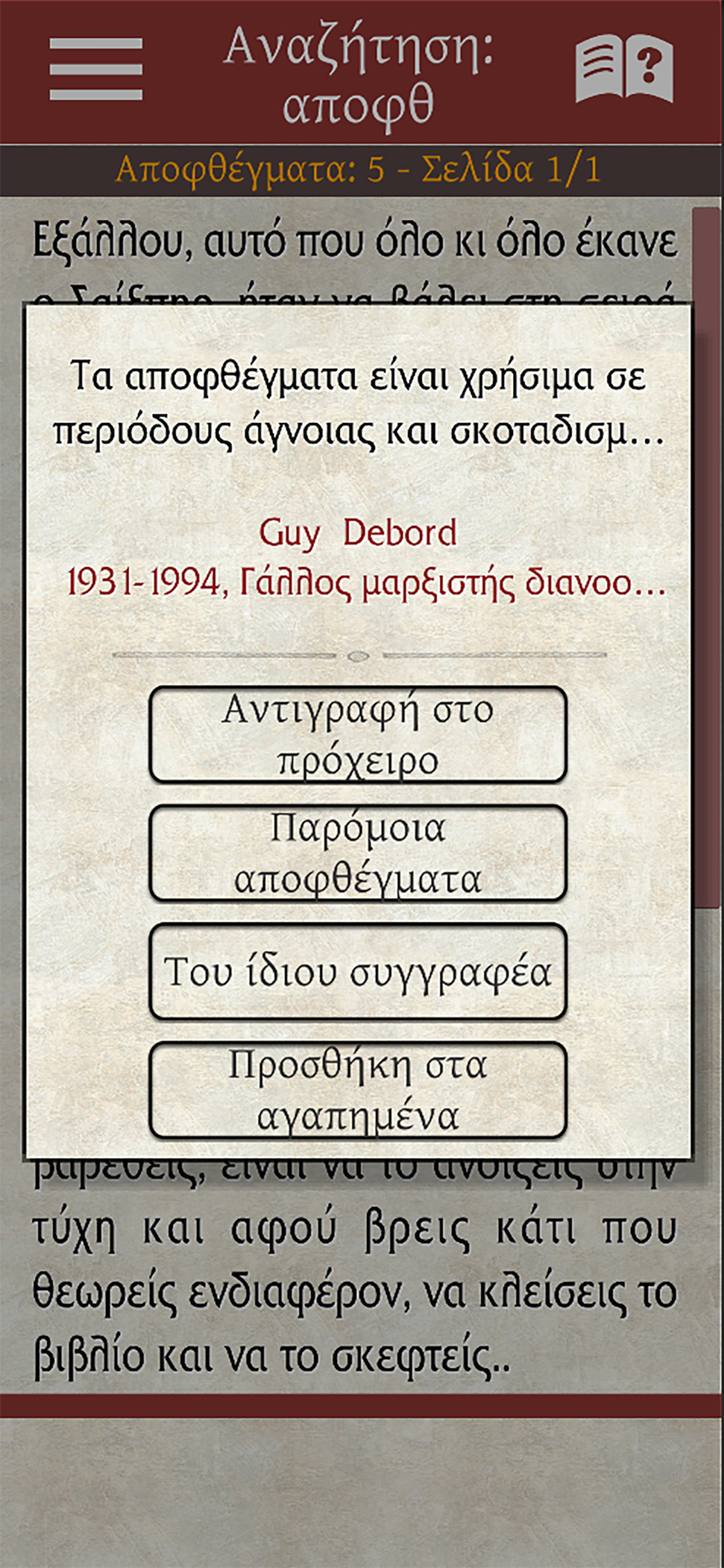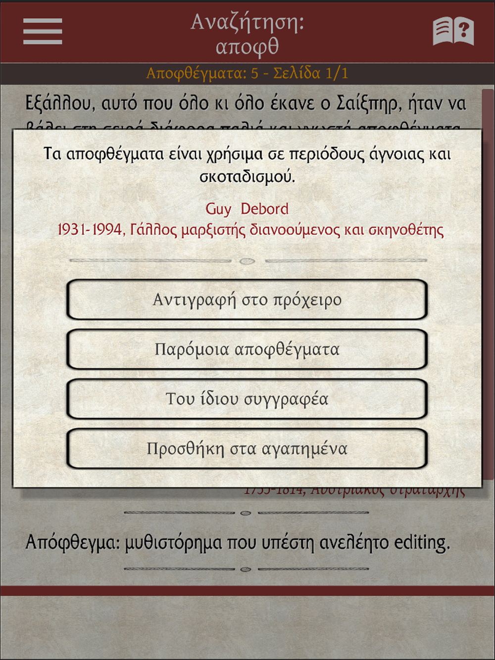 Μπορεί να γίνει επίσης αναζήτηση συγγραφέα και να εμφανιστούν όλα τα αποφθέγματά του.