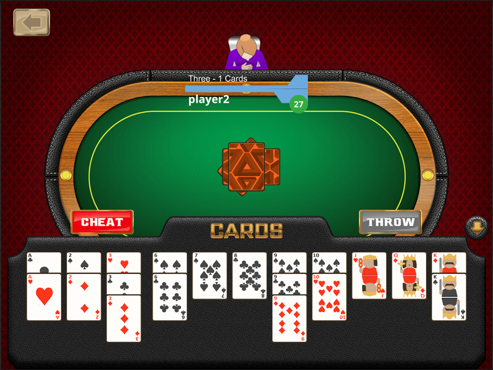 If user B decides to take the risk by putting random 4 cards and user A press the “CHEAT BUTTON”, Then user A gets all the cards. And the Winner Starts.