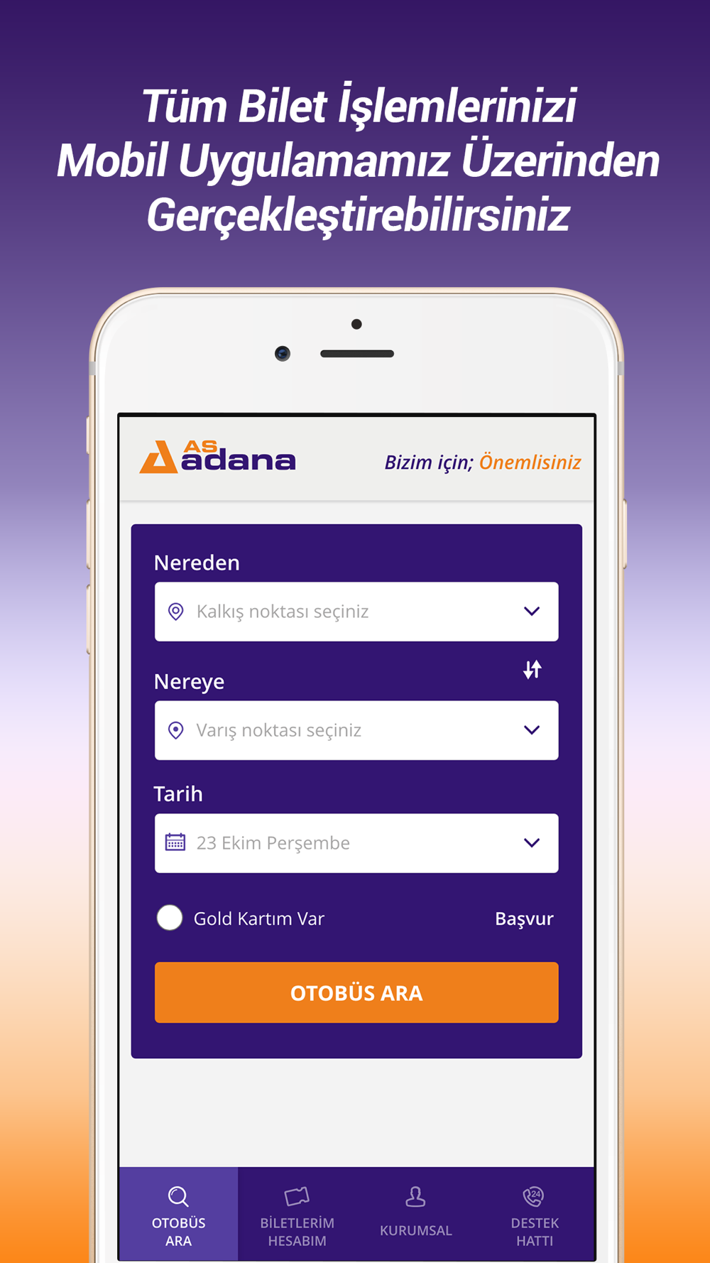 Uygulama üzerinden; seferleri görebilir, bilet alım işlemlerinizi yapabilirsiniz.