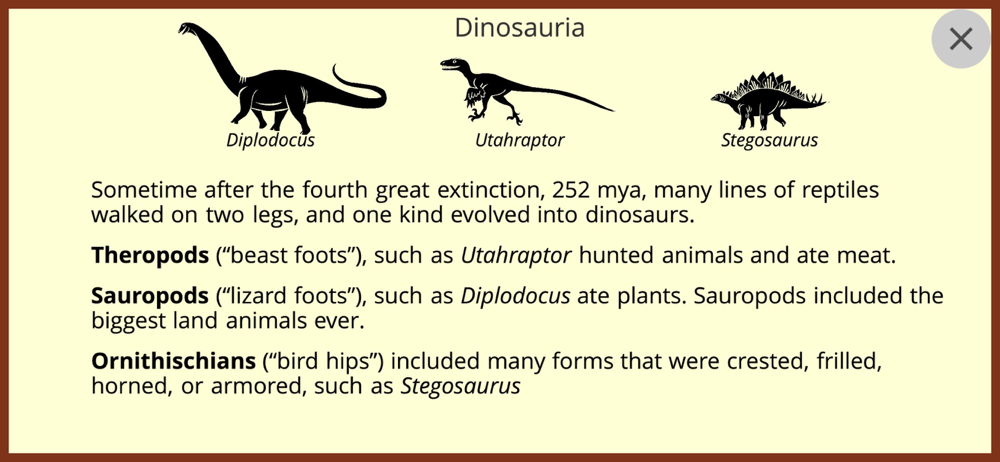 * Science notes about the three larger clades and the nine smaller clades, including bats, primates, whales, birds, lizards, winged insects, spiders, and crabs.