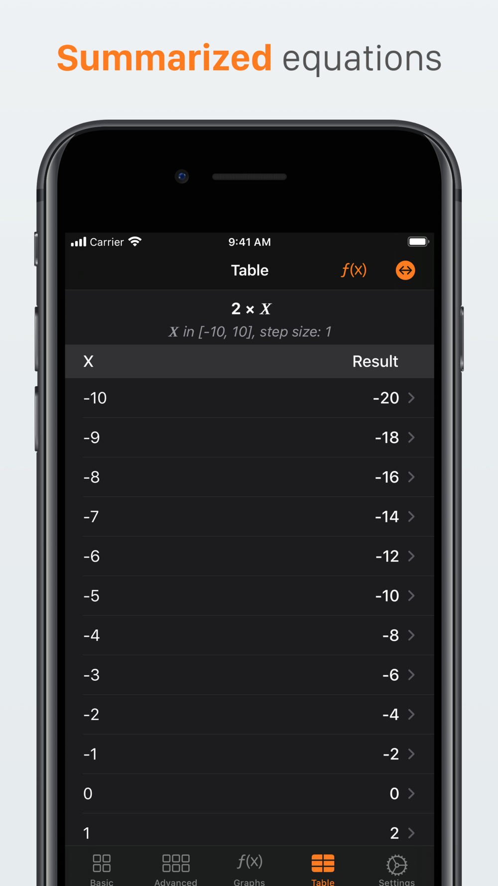 Wanting to see the results for one equation for multiple inputs? Simple see them all in a clear table!