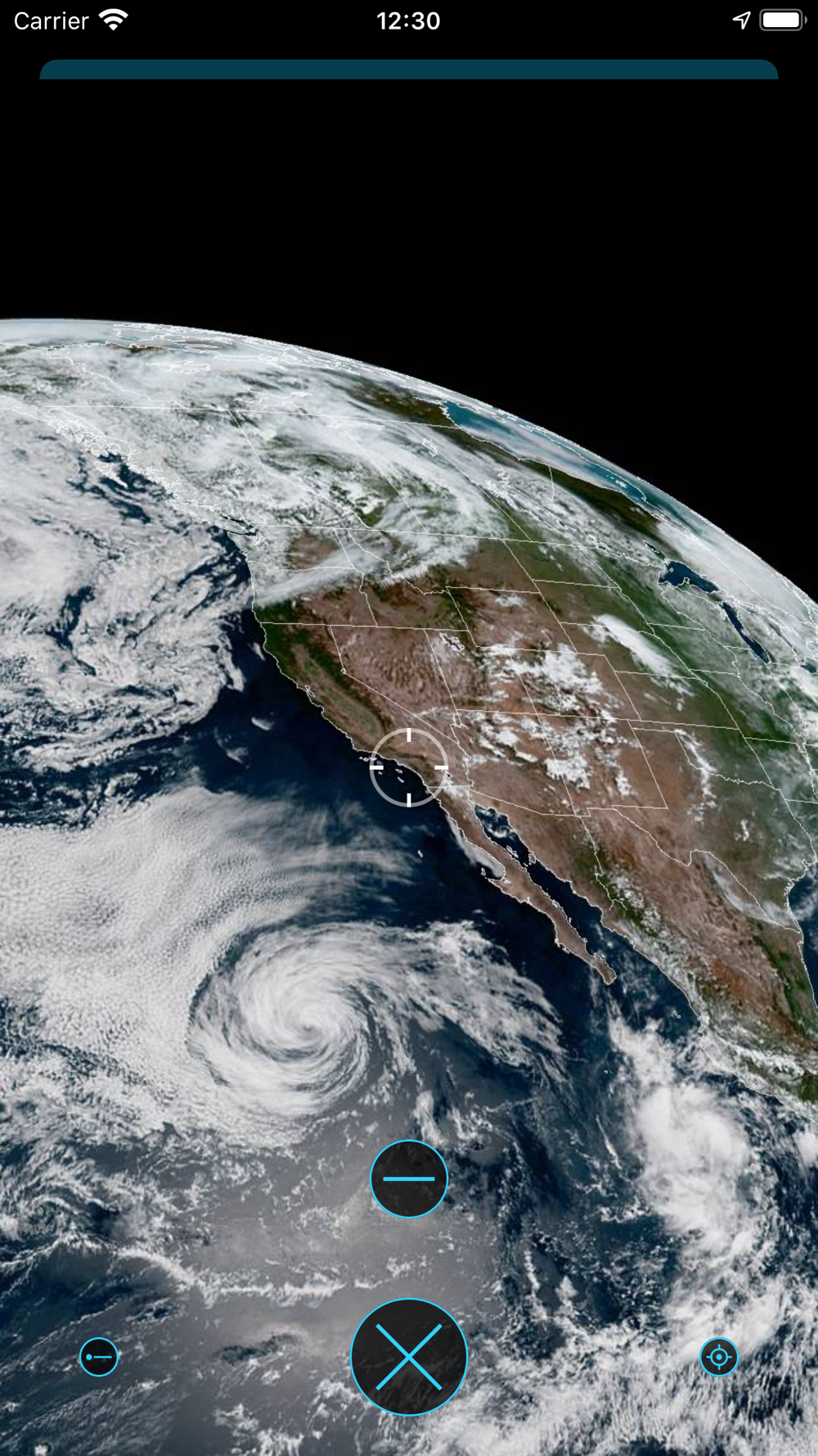 The Earth view shows the last 24 hours of satellite imagery near your current location (the small blue dot is you!) Tap the + button to see a larger version of the latest image. The hurricane symbol at the top of the view will show the latest forecasts from the National Hurricane Center.