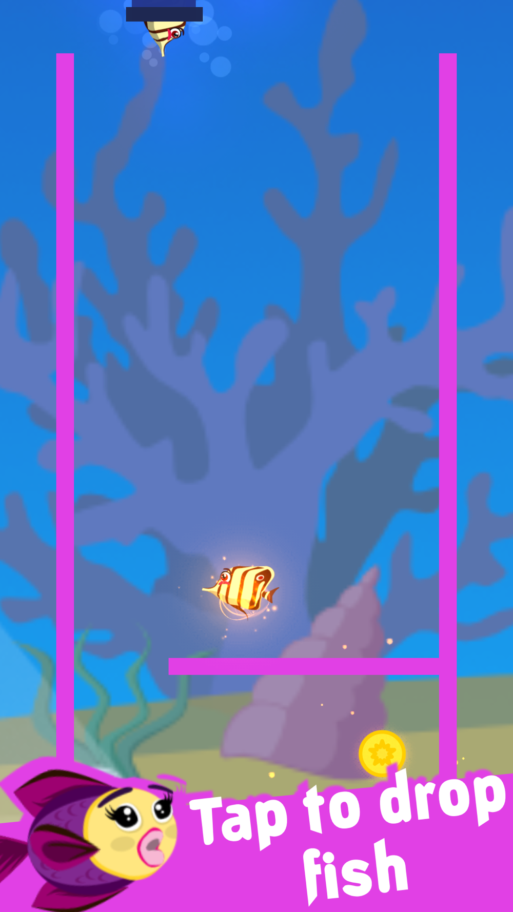 Drop fish with one tap of the screen. Lining the fish up with the coin is the tricky part!
