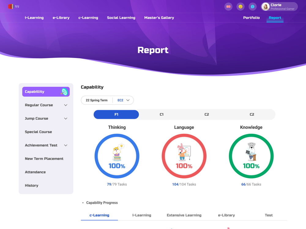 - i-Learning / e-Library/ c-Learning / Social Learning 학습 가능