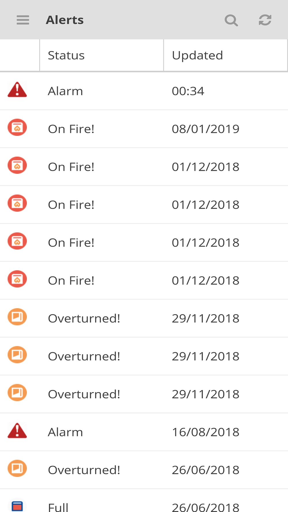 The system offers a main screen of alerts of the system, and different access ways to the information of the devices: through labels, through a map, or through direct access to individual devices.