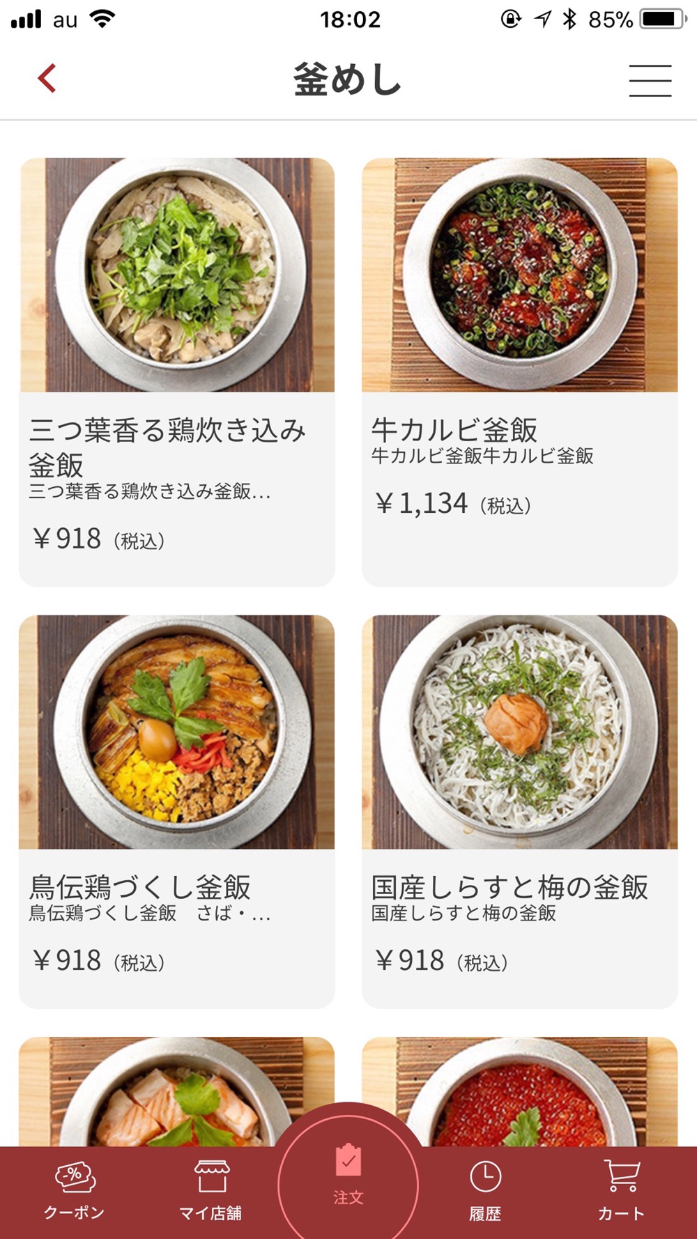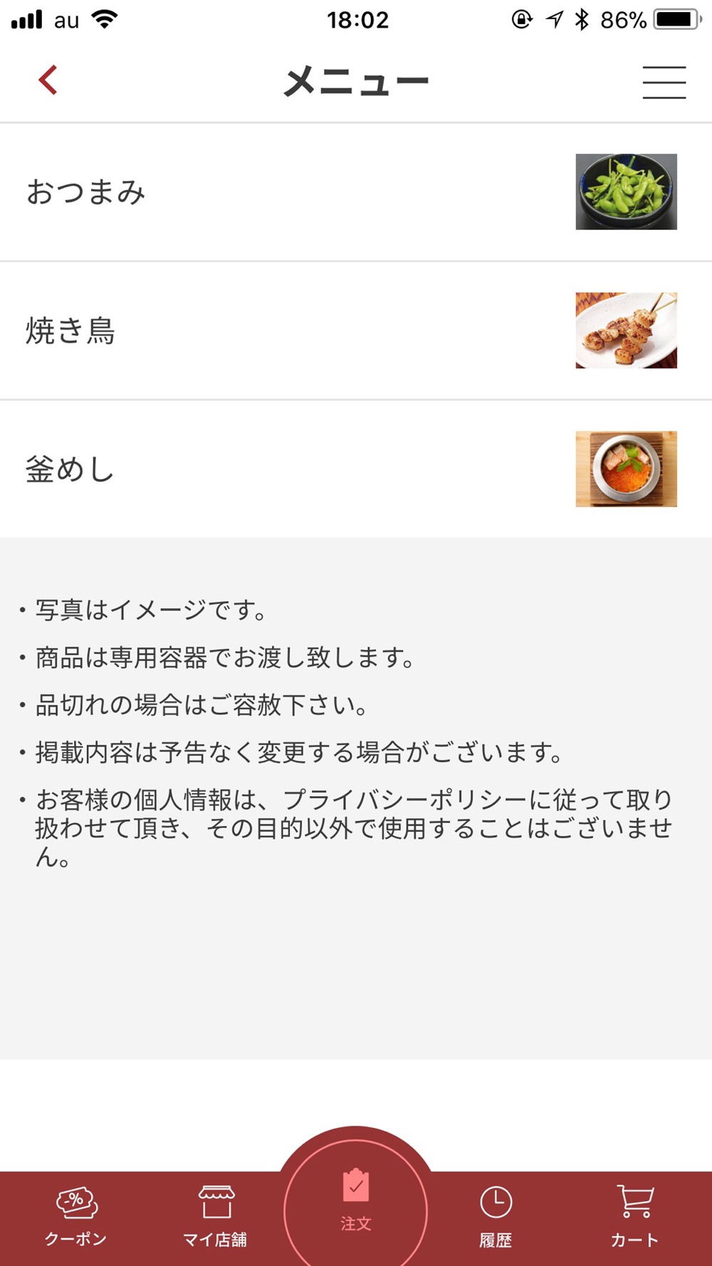 お持ち帰りの串焼・釜飯をスマホから注文予約できます