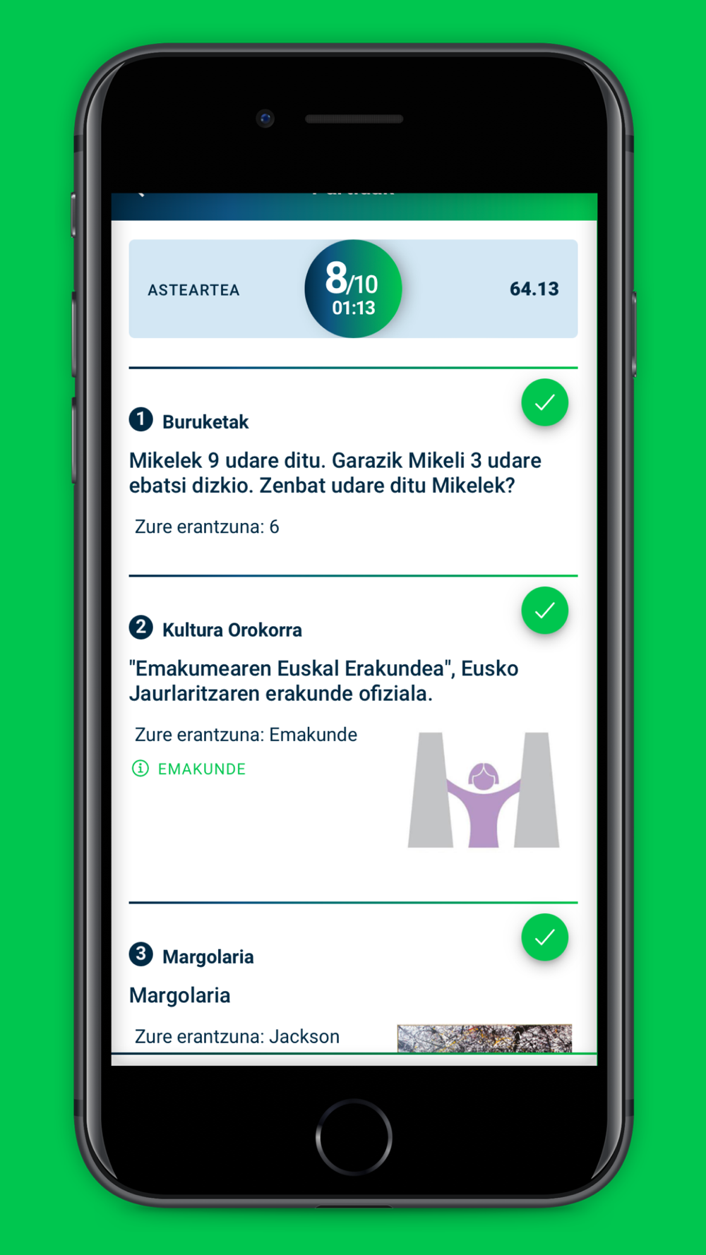 Tribial estiloko jokoa izango da. Asmaturiko erantzunen eta pasatako denboraren arabera, puntuak lortuko dituzu. Puntu horietan oinarriturik osatzen dugu sailkapena.