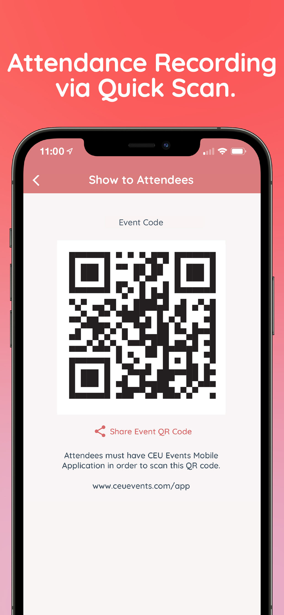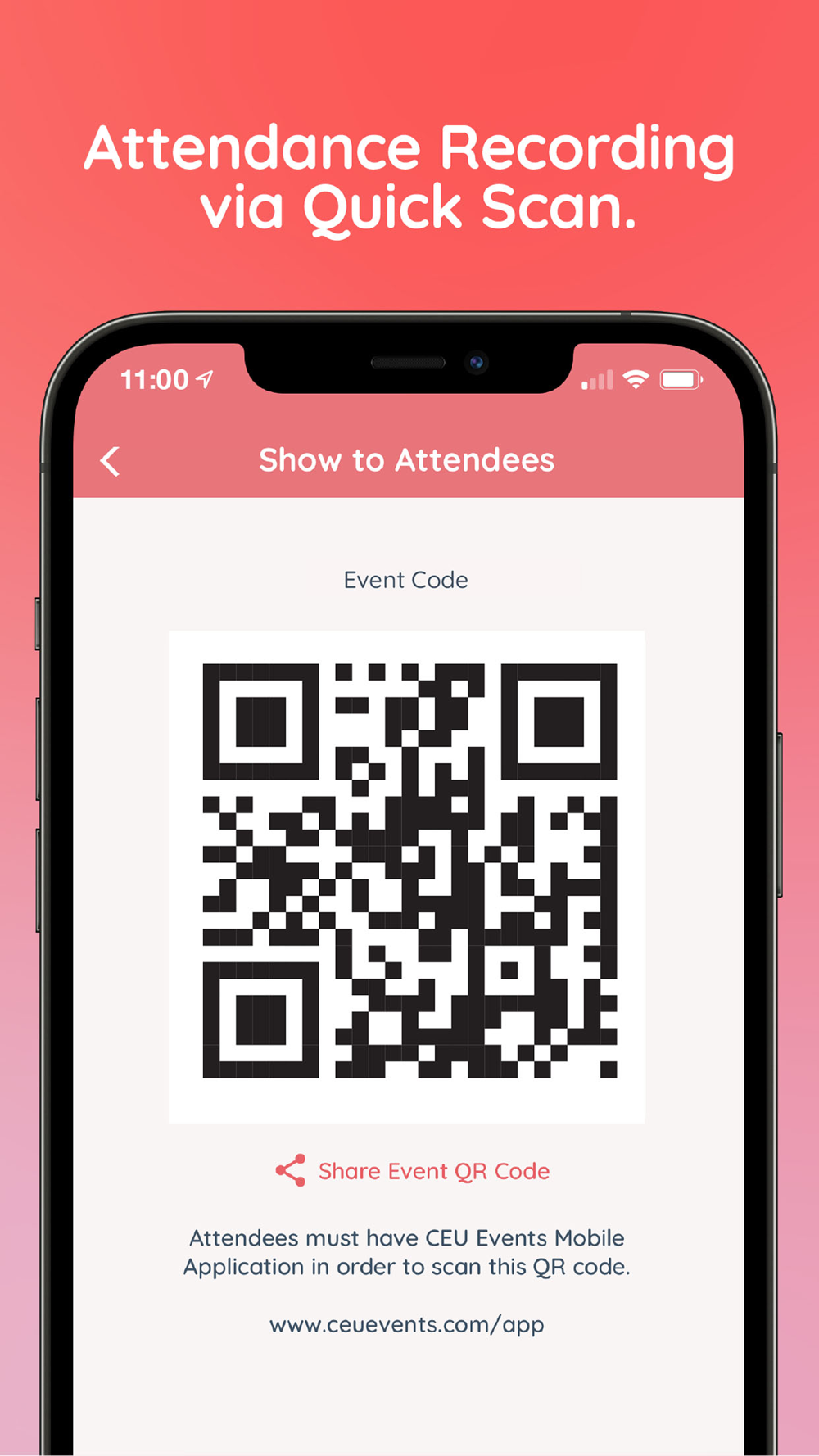 CEU Events mobile app is an extension of the CEU Events online platform, which transforms the way teams manage their Continuing Education programs. This mobile app focuses on attendance recording for both attendees and instructors. To use this app you must have an active account with www.ceuevents.com.