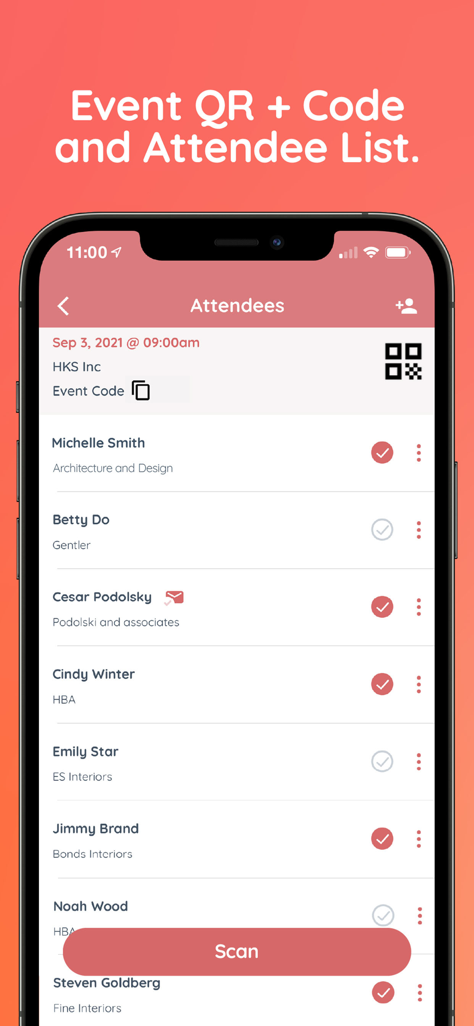 - register for events the way you want with Event Code or QR Codes for speedy and electronic attendance