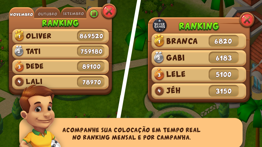 Ahhh, você também pode ganhar se ficar em primeiro lugar na pontuação geral do mês! Quanto mais você jogar, mais chances tem de ganhar!
