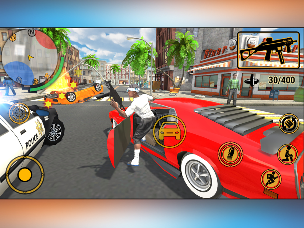 This a unique game brings you to the streets full citizens, cops, gangsters and boss of mafia. Become a chief on the streets of criminality in Grand City! Unlock all the weapons and find secrets hidden on the map.