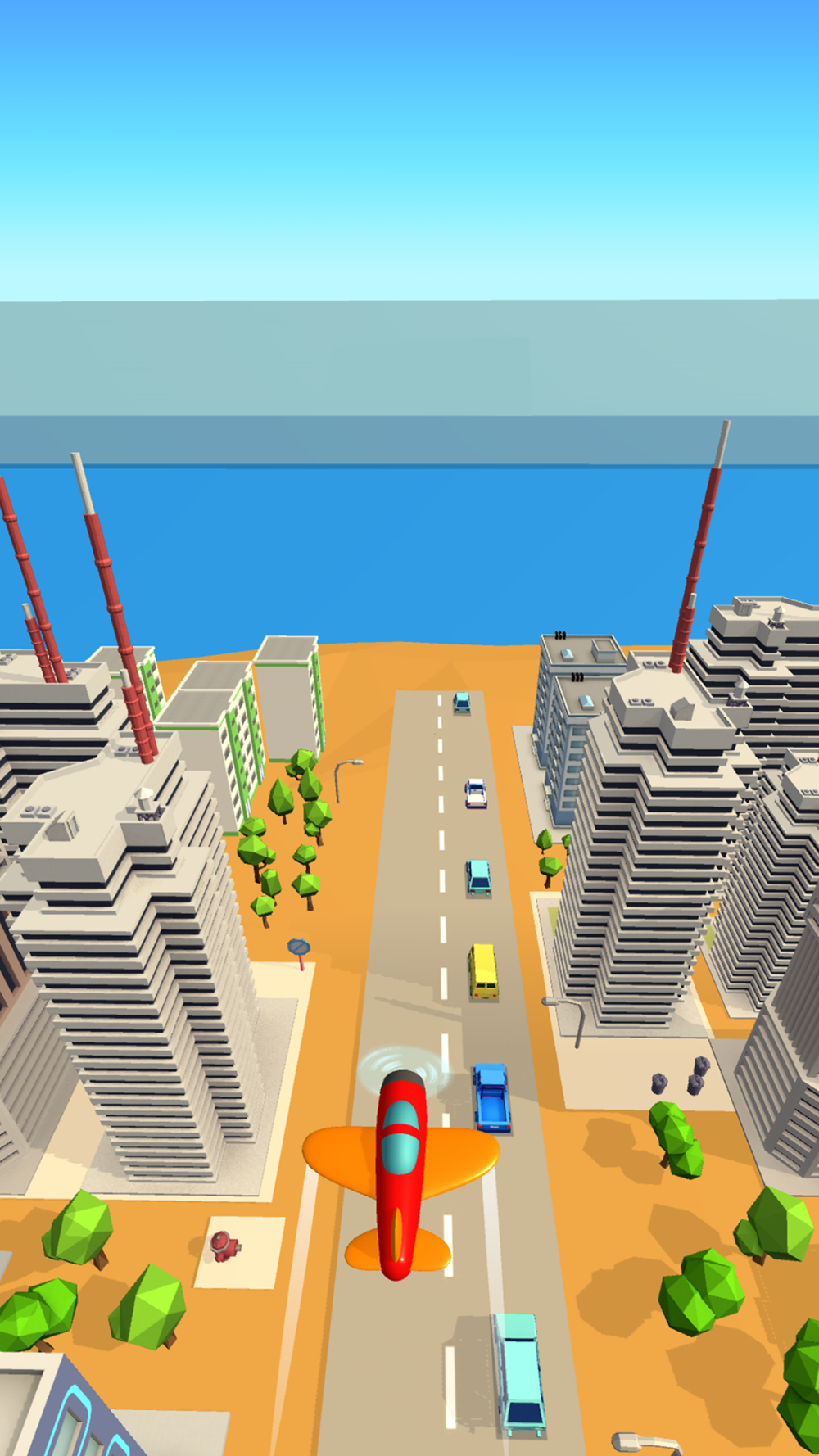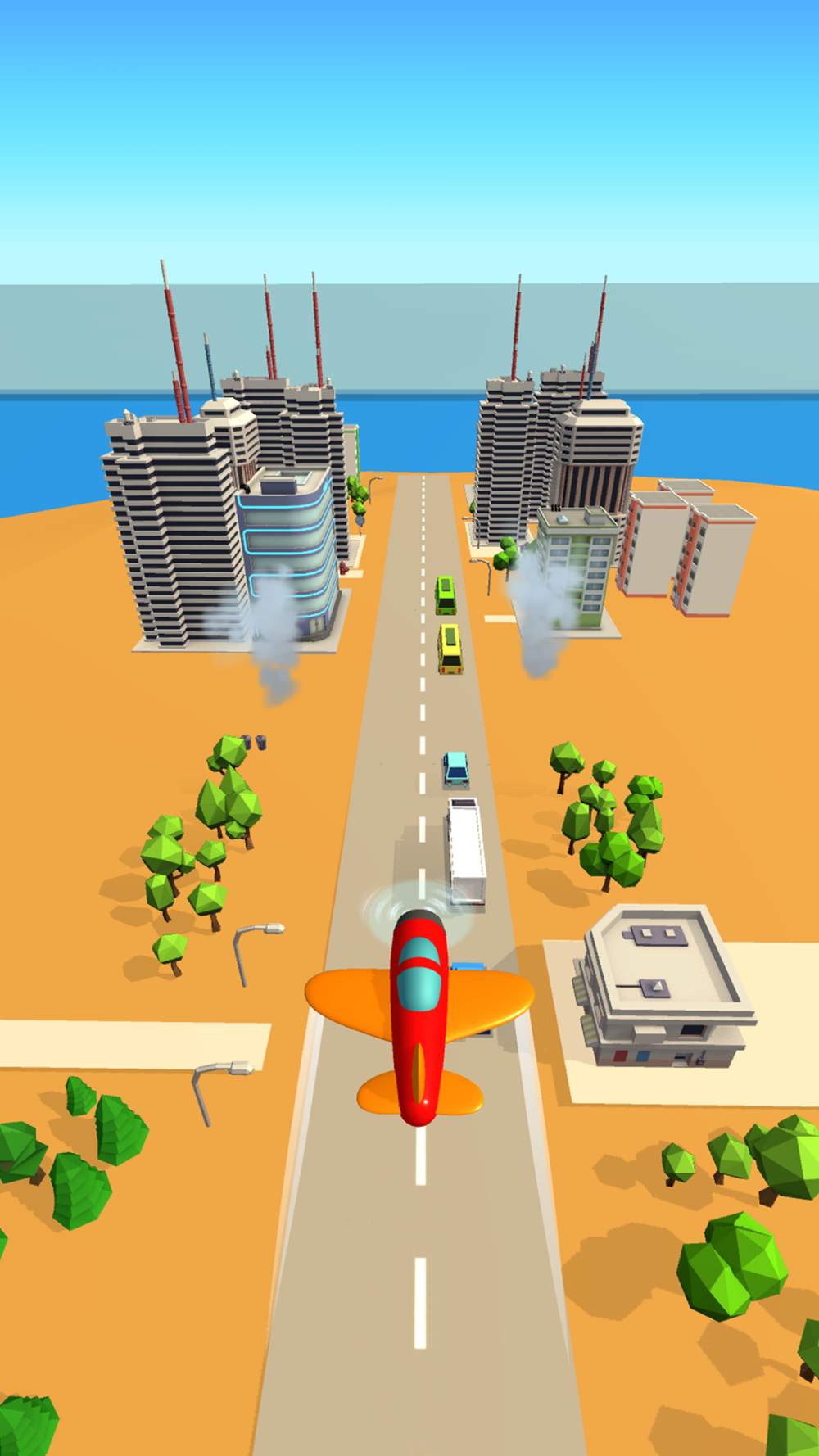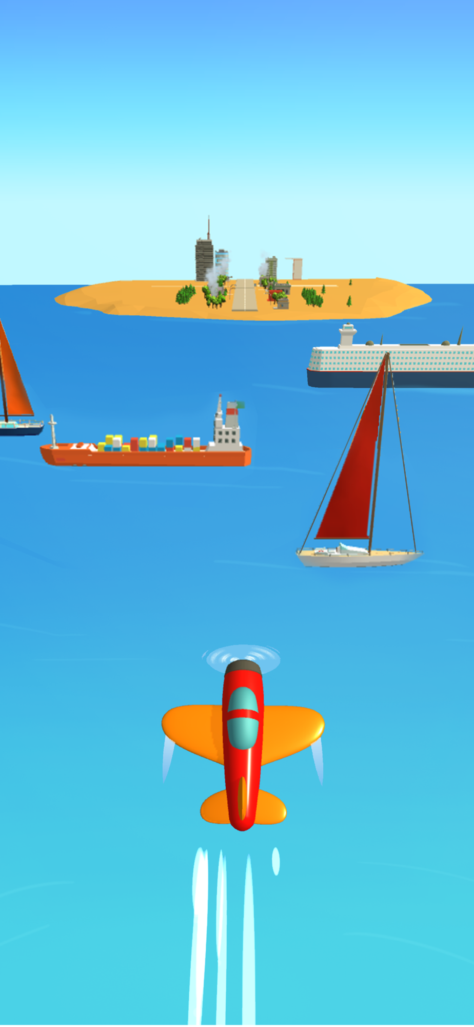 Fly over the bay, open fire on buildings, trees, boats, flying objects! Aim the red items! Once you remove all red items you get to explore new lands!