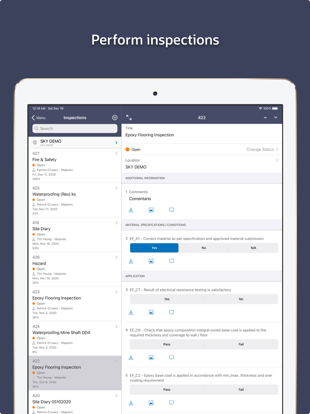 Oracle Aconex mobile application provides issue and inspection management for quality assurance/control, safety on construction sites, pre handover inspections via punchlists as well as the ability to view project drawings and pin issues to drawings. It facilitates keeping track of important site details such as weather, equipment, workforce etc through daily reports. This application helps overcome the challenges of paper-based drawing and inspection management, as well as scattered and incomplete project data.