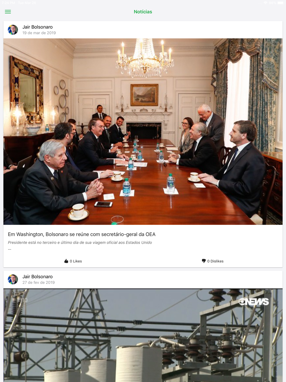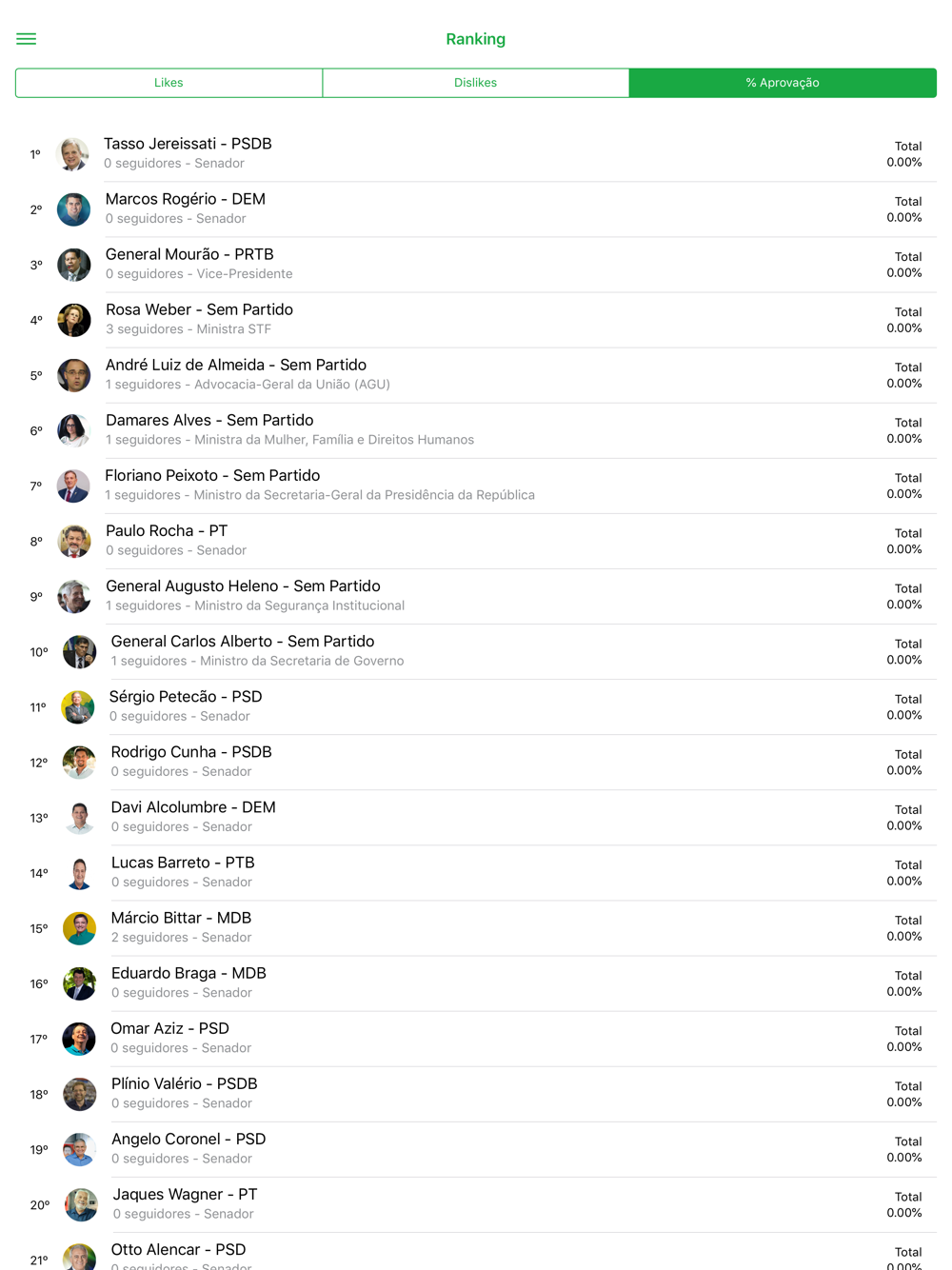 Correções de bugs, Melhorias de performance Sugestões de políticos Entrar como visitante Perfil do usuário Login