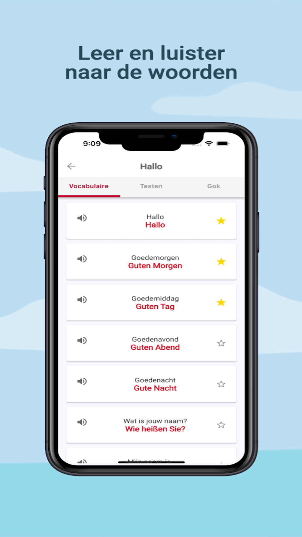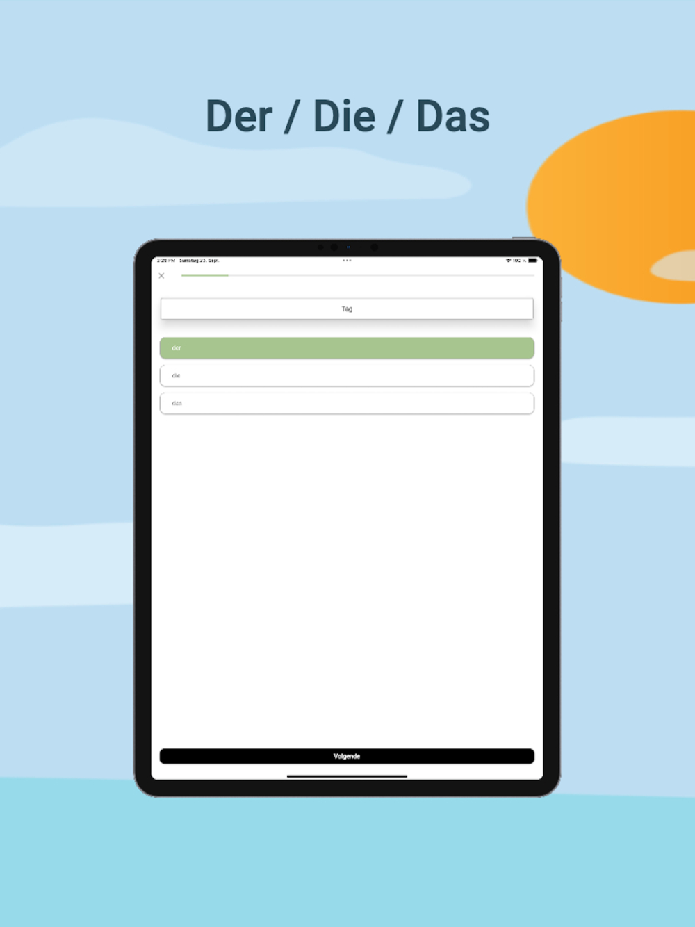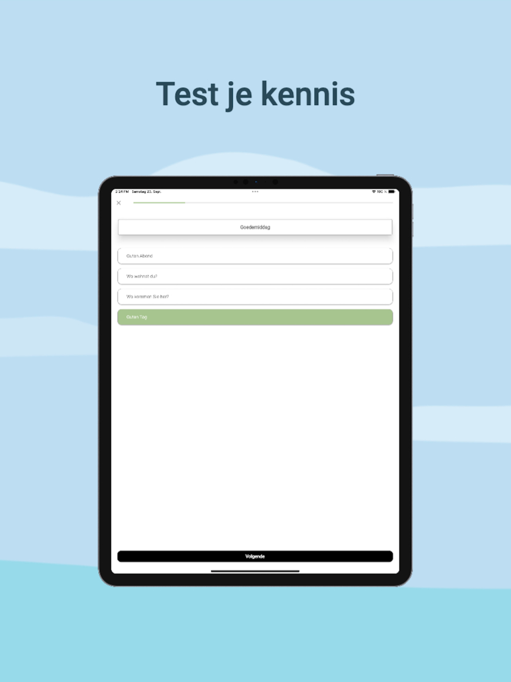 De app voor het leren van de Duitse taal is onderverdeeld in